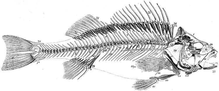 Skeletons of large osseous fishes are as valuable as their skins. To preserve them it is only necessary to remove the soft parts of the abdominal cavity and the larger masses of muscle, the bones being left in their natural continuity. The remaining flesh is allowed to dry on the bones, and can be removed by proper maceration at home. The fins ought to be as carefully attended to as in a skin, and of scaly fishes so much of the external skin ought to be preserved as is necessary for the determination of the species, as otherwise it is generally impossible to determine more than the genus.