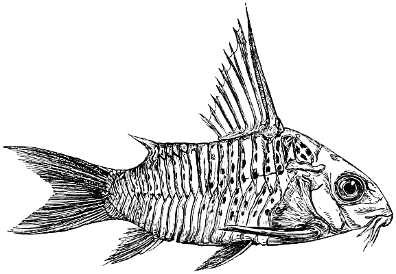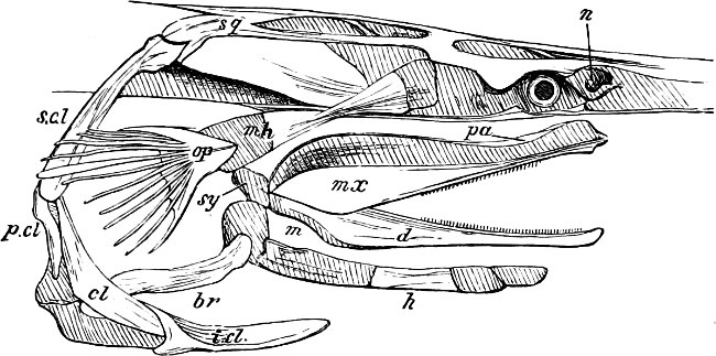 With regard to the illustrations, about twenty have been prepared after originals published by Cuvier, J. Müller, Owen, Traquair, Duméril, Cunningham, Hasse, Poey, Siebold, and Gegenbaur. A similar number, representing extinct fishes, have been taken, with the kind permission of the author, from Owen’s “Palæontology.” My best thanks are due also to the Committee of Publications of the Zoological Society, and to the Editors of the “Annals and Magazine of Natural History,” and of the “Journal des Museum Godeffroy,” for the loan of woodcuts illustrating some of my papers on South American fishes and on larval forms. The remainder of the illustrations (about three-fourths) are either original figures, or formed part of the article on ‘Ichthyology’ in the former edition of the “Encyclopædia Britannica.”