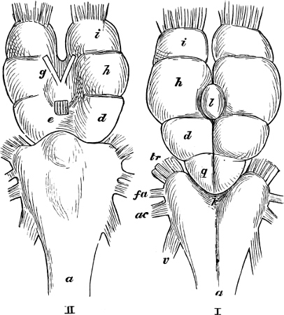[12] This nerve is not shown in the figure of the brain of the Perch (Fig. 41), as reproduced above from Cuvier.