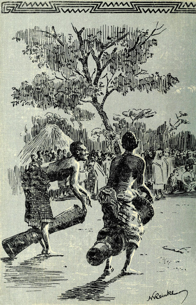 Die Melodie ist ansprechend und einschmeichelnd; in seinen Träumen der rauhen Natur Afrikas weit entrückt, blickt der fremde Mann sinnend in den Nachthimmel hinauf. Im Drang der arbeitsschweren Zeit, die nunmehr hinter ihm liegt, hat er kaum Zeit gefunden, an das alte Uleia und seine Kultur zurückzudenken; jetzt, wo des Vorsängers Pesa mbili klarer Bariton periodisch mit dem machtvollen Chor wechselt, da ziehen ihm in bunter Reihe die Kulturbilder gleicher Art von daheim durch den Sinn: wie des Grobschmieds nervige Faust am Amboß den Rhythmus sucht, um beim Schwingen des wuchtigen Hammers nicht allzu rasch zu ermüden. Aus ferner Jugendzeit, wo die garbenfressende Dreschmaschine noch nicht zur Errungenschaft des kleinen Landwirts zählte, hört er von des Nachbars Tenne her den Drei- und Viertakt der Drescher. Ping ping ping, ping ping ping, zum Greifen nah hat er es vor sich, das typische Bild der Großstadtstraße; die Zigarre im Munde, sind die Herren Pflasterer mitten im Strome des Verkehrs aufmarschiert. Das heißt, dieses halbe Dutzend Männer hat mit dem Setzen des Steines selbst nichts zu tun, sie sind die Elite, die mit der schweren Handramme in kunstgerechtem Stoß und Schlag Stein für Stein im einzelnen und dann auch noch das Ganze, nur roh Vorgearbeitete, nachfeilen müssen. Ping ping ping, ping ping ping, bald anschwellend zum gewaltigen Forte, dann wieder herabsinkend bis zum feinen Tone des silbernen Glöckchens, mischen sich die Töne in den Straßenlärm hinein. Mit Riesenkraft hat der Hüne dort[S. 473] das Eisen soeben auf einen neu in Angriff genommenen Stein herunterkrachen lassen, kaum zentimeterhoch hebt und senkt sein Nachbar das Werkzeug; und alles geschieht im strengsten Takt: Ping ping ping, ping ping ping. Das ist es ja eben: dieser Takt ist der Ausfluß eines Naturbedürfnisses im Menschen, er ist der Vorläufer, ja die Vorbedingung jeder körperlichen Dauerarbeit überhaupt. Das empfinden auch wir Träger einer alten Kultur noch immer: ganz einerlei, ob wir im Trupp dahinmarschieren; ob das Einsetzen der Regimentskapelle die Beine der müden Soldaten zu neuem, frischem Ausschreiten elektrisiert; ob wir gemeinsam eine schwere Last von ihrem Standort zu bewegen suchen, Takt und Rhythmus begleiten und beleben uns in allen Lebenslagen. Und nun der Naturmensch erst! Ich glaube, der Neger kann nicht das Geringste ausführen, ohne seine Arbeit mit einem schnell improvisierten Liede zu begleiten; selbst die schwerstgefesselten Kettengefangenen der Küste schieben ihre Karre oder ziehen den Wagen unter stetem Wechselgesang. So ist denn auch das Hacken des Feldes eigentlich mehr ein Spiel, zu dem der Körper ganz von selbst in die rhythmische Bewegung des Tanzens verfällt; kein Tanz aber ohne Lied.