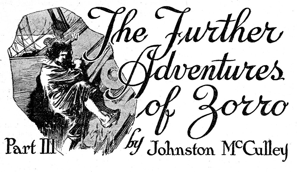 He had no faith in a personal encounter with Señor Zorro. Something seemed to tell him that such would result fatally for himself. And he had small faith in proving Zorro a traitor after the fight, and a great fear that Zorro and some of the captured pirates would, on the other hand, prove him to be one.
