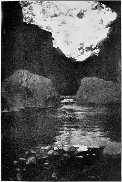 | Great rocks seem to float on the stream, mysteriously lighted, like Böcklin’s isle of the dead |