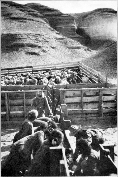 We came into the town of Medora on the Little Missouri, after the hills had flattened out into the endless plains of North Dakota. On a cutbank dominating the[Pg 361] river at its bend a great gloomy house frowns. Here the French Marquis de Mores once lived like a seigneur of the glorious Louis, in crude, patriarchal magnificence. Even in his lifetime he was a legend in this simple Dakotan village. But a greater legend centres in a large signboard opposite which tells that Roosevelt once ranched near by,—a matter of pride to all Medorans. Of this town in the eighties he wrote, “Medora has more than its full share of shooting and stabbing affrays, horse stealing and cattle-lifting. But the time for such things is passing away.”