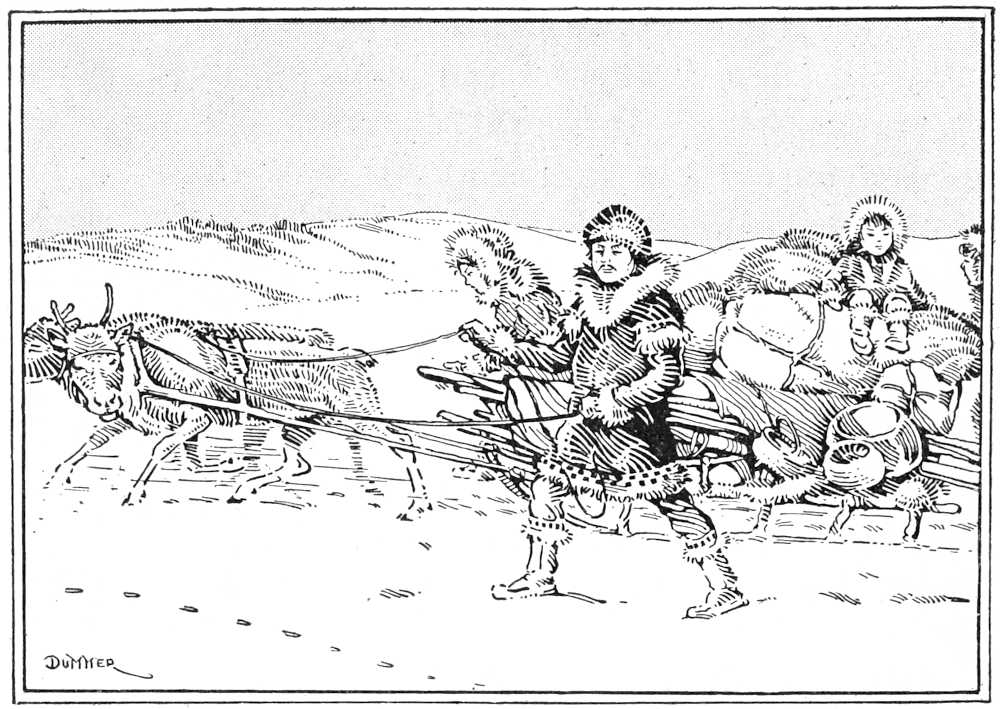“But listen, son,” she said. “I have not yet finished my story. The first little herd of reindeer increased in numbers as the years went by, doubling their number every third spring. The two boys grew to manhood and married, and had families of their own. The old hunter and his wife died. There came a time when the herd was too large for the corrals. Dainten and Tah-ne-na had to take on new herders to help with the work. They now herded their reindeer in the open, day and night.”