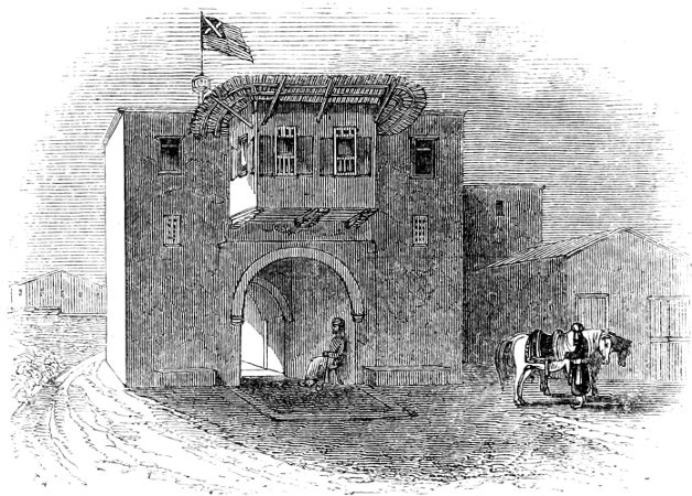 The houses in the Bkâ were not of stone, as on the mountain, but of mud bricks dried in the sun. They were low, and had the appearance of much misery on the outside, although, as we were told, very comfortable within. This we had no opportunity of ascertaining, as the plague reigned about us, and it was by no means prudent to approach, much less to enter, any habitations. The dress of the people was different from that of the mountaineers. No horns were now to be seen on the heads of the women, who likewise wore red aprons, which were universally seen towards the Desert, but never near the sea-coast. The Palma Christi was cultivated very generally for the sake of the oil, which is used for lamps. As harvest was now over, we could not see what were the particular productions of the plain; it seemed, however, highly fertile, being of that fine snuff-coloured mould which, at Hamah and elsewhere, had been pointed out to us as most useful to the husbandman for agricultural purposes.