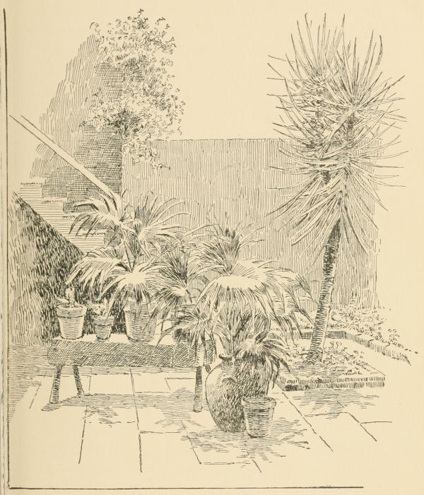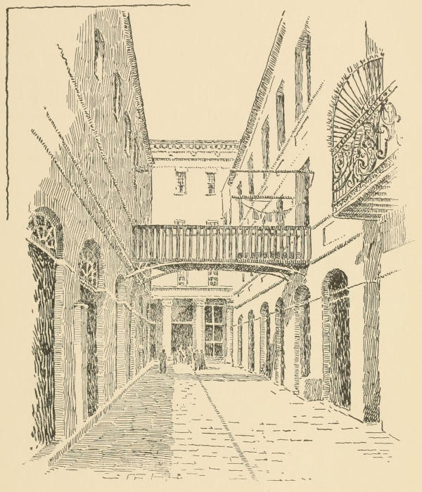In our rambles down Royal Street we passed an open corridor, with a view beyond of a blooming bit of parterre. She paused to look in. I saw only the bright flowers and the vases covered with vines. She saw only an iron fretwork lamp suspended from the ceiling. Oh! that was too artistic for anything! Did I think the people in that house would permit her to sketch, from the entrance, that long corridor and that wonderful lantern?
