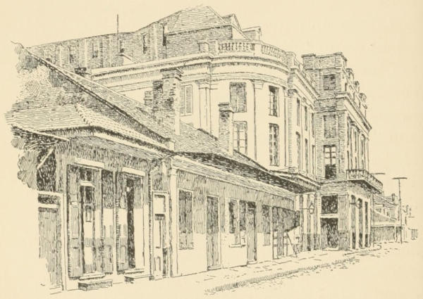 Mamma would be hospitable, would have us see the faded old house, which had been a grand mansion in its day. We saw evidences of that in the very large rooms, the tarnished gilding, and the ample passages and old boudoirs. I think the blouse volante woman must have had chambres garnies, but we saw no evidence of that. She had the daughter play on the one bit of furniture that amounted to anything, the fine piano, which she did quite charmingly. From the rear gallery we could see the top of the Opera House, and she told us they were abonnées, “so her daughter could hear the best music.” This was a glimpse of the old Creole life that I was glad my daughter should have.