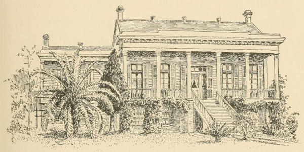 “Yes, indeed, my mamma was a Bienvenue.” The child flew upstairs to tell her mamma, and quickly returned with an invitation for us. Mamma desired to see the sketch, and to meet the lady who had visited her elder sisters. My daughter, used to the cold formality of the New York life, was overwhelmed with the Creole cordiality, delighted to hear that the lamp which had attracted her was a real Spanish antique, and had been hanging in the corridor almost a hundred years; delighted to be shown the superb chandeliers in the parlors, almost as old; and to have a cordial invitation to come another day and make a sketch of the little parterres and of the rambling balconies in the rear.