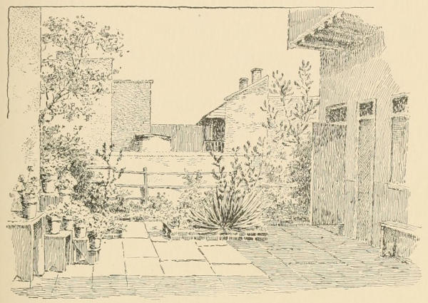 Wandering down, what to her was “fascinating” St. Anne Street, behold a narrow alleyway, revealing in the rear sunlight a cistern, only a cistern, but that atmospheric effect was alluring. Up went the easel, out came the color box. The street was absolutely deserted, and we felt quite secure of an uninterrupted half hour; but a swarm of gamins came, apparently from the bowels of the earth, and surrounded[310] us. At a critical moment a woman appeared, also from nowhere, and began to sweep diligently the little half-dark alley. She was transferred to the sketch before she knew what was “going on.” “Mais gar! c’est Pauline, oui, c’est Pauline même,” the little imps declared, as they peered over the artist’s shoulder and saw the figure. That final touch broke all attempts at decorum, and we begged a passing man with a walking cane to put the mob to flight.