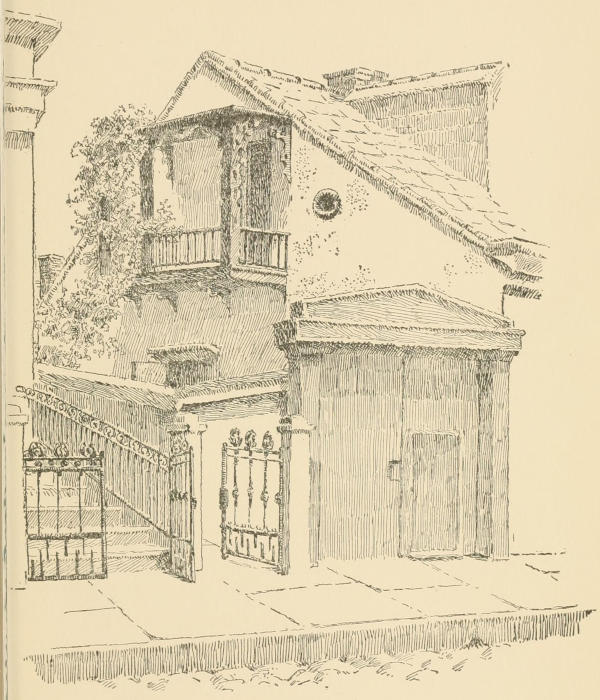 Elise sat inside the gateway and sketched a queer house opposite, gable end to the street, and a balcony way high up that looked like a bird cage hanging from a window, a tiny balcony draped in blooming vines. The sacristan was disappointed that she did not attempt the old convent building, but the perspective from the street did not appeal to the artist, as did that one-sided building that seemed to have turned its back to the street.