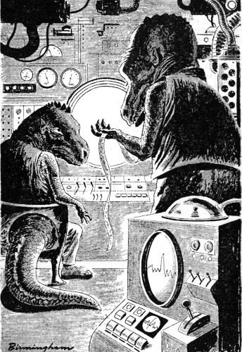 "Our problem," Mittich, the Hisser of the Assembly was saying, "has been clearly defined. We have captured the expeditionary ship of an alien culture that appears to be expanding in the direction of the Tzarean Shoal. We have taken pain to teach its two crew members the rudiments of our language. And we have found that the official alien response to this situation may or may not be hostile."