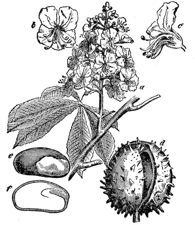 We may observe in the spray of different trees an invariable correspondence with some of their other characters. Nut-bearers, for example, have a coarser spray than small seed-bearers; trees with large or compound leaves, than those with small or simple foliage; and trees with opposite, than those with alternate branches. Hence the oak and the hickory have a coarser spray than the birch and the elm, and the large-leaved poplar than the slender-leaved willow; the ash, with compound leaves, than the maple with simple leaves, though both have opposite 274branches. But if a tree bears a large nut, with leaves compound and branches opposite, like the horse-chestnut, it has no spray at all. The beech-tree, however, having a very small nut, has a fine and elegant spray, not surpassed by any tree of the forest. The opposite character of the smaller branches of certain trees is never continued in the larger divisions. But the angularity of the boughs of the oak is repeated in its angular spray, and the gracefulness of the principal branches of the elm, the birch, and the lime is traced through all their minute subdivisions.