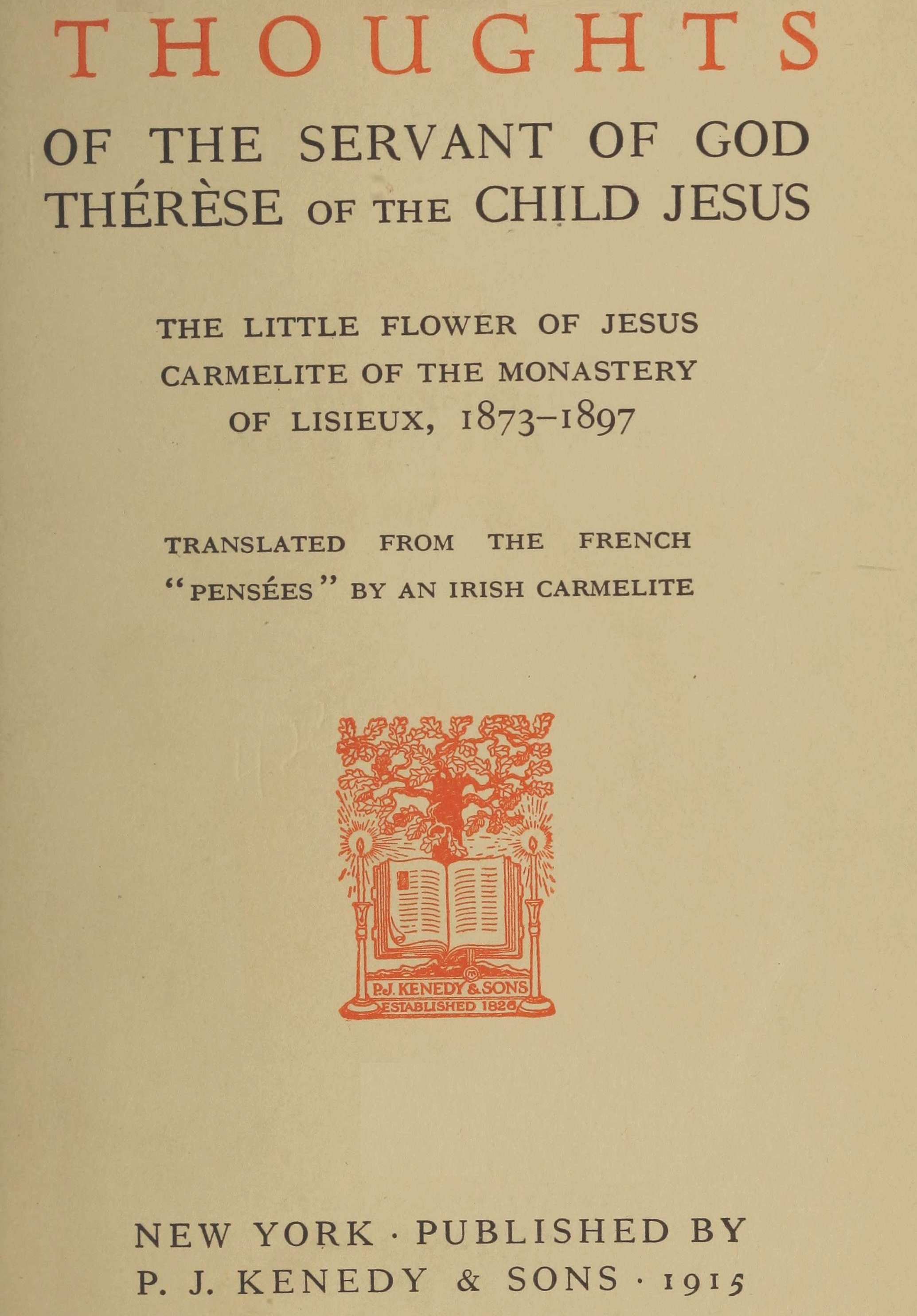 Title: Thoughts of the servant of God, Thérèse of the Child Jesus