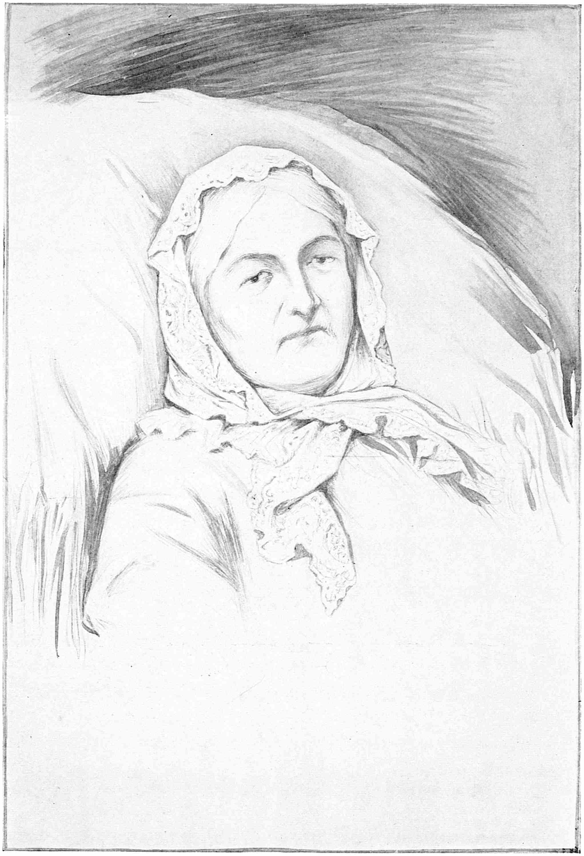 The death of Miss Nightingale occurred somewhat suddenly on the afternoon of August 13th, 1910, at her residence 10, South Street, Park Lane. The cause of death was heart failure. She sank peacefully to rest in the presence of two of her relatives. Until the day before her death she was in her usual health and bright spirits. In the previous May she celebrated her ninetieth birthday, spending the day quietly with her household. On that occasion she was the recipient of many congratulations from her friends, and her room was gay with spring flowers. The King, in the midst of his own bereavement, in the recent death of his350 father, was not unmindful of the heroine of the Crimea, and sent her the following message: