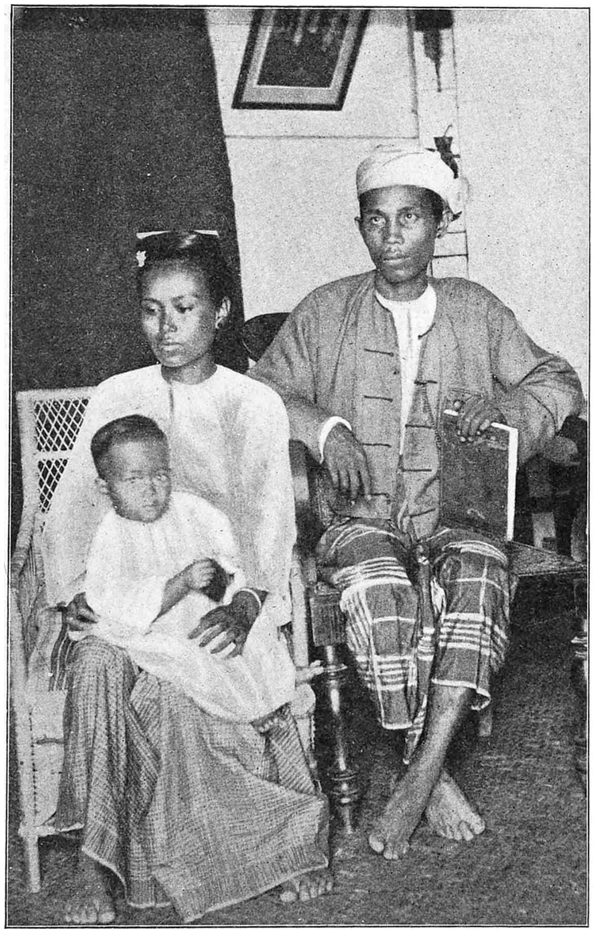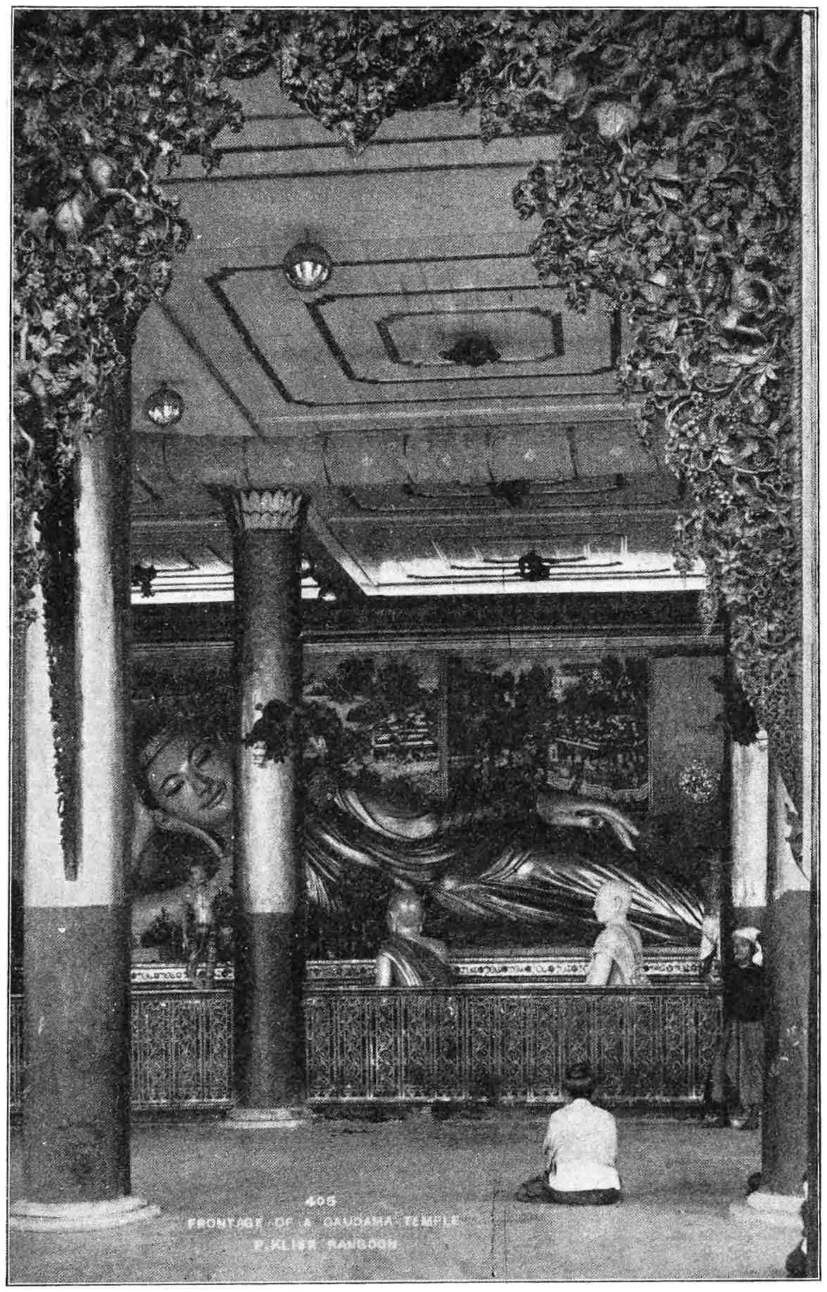 I could not wait long that first morning in Rangoon, and the first of a new year, to get out into the streets astir with human life. I took my first impression of many specimens of humanity that passed in view. While the common distinctions in dress, complexion, manners, and occupations, which mean so much when you come to know their significance, were not recognized in this first view of the people, I did get a very definite impression of two classes—one well formed and well fed, and the other class, those poor weaklings, mostly of the depressed peoples of India, who migrate to Burma. Of the latter, I wrote at the time to friends in America, that they were specimens of the human race that had about run their course, and must die away from sheer weakness. Later conclusions do not differ materially from this first decision. But I did learn later that the fine-looking people of strong physique were Burmese, and that the province of Burma, generally, has very few peoples of any race that compare in feebleness with some of the immigrants from India that flock into the cities,36 such as Rangoon. It is chiefly what the traveler sees in coast towns like Rangoon, which leads so many transient passers-by to wrong conclusions concerning Oriental countries. In Rangoon, many other peoples are more in evidence than the Burmese.