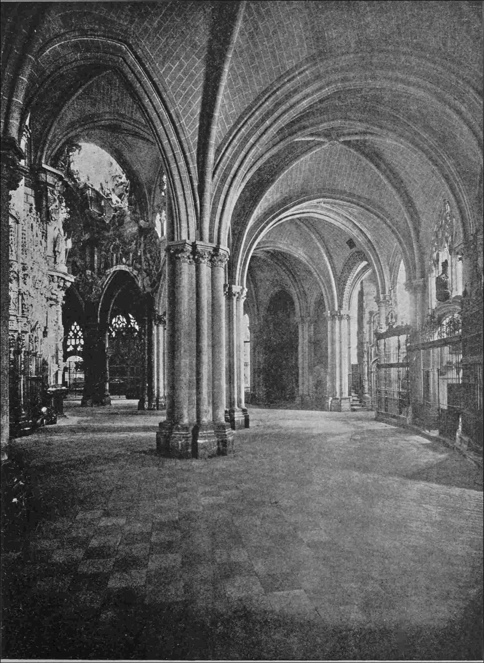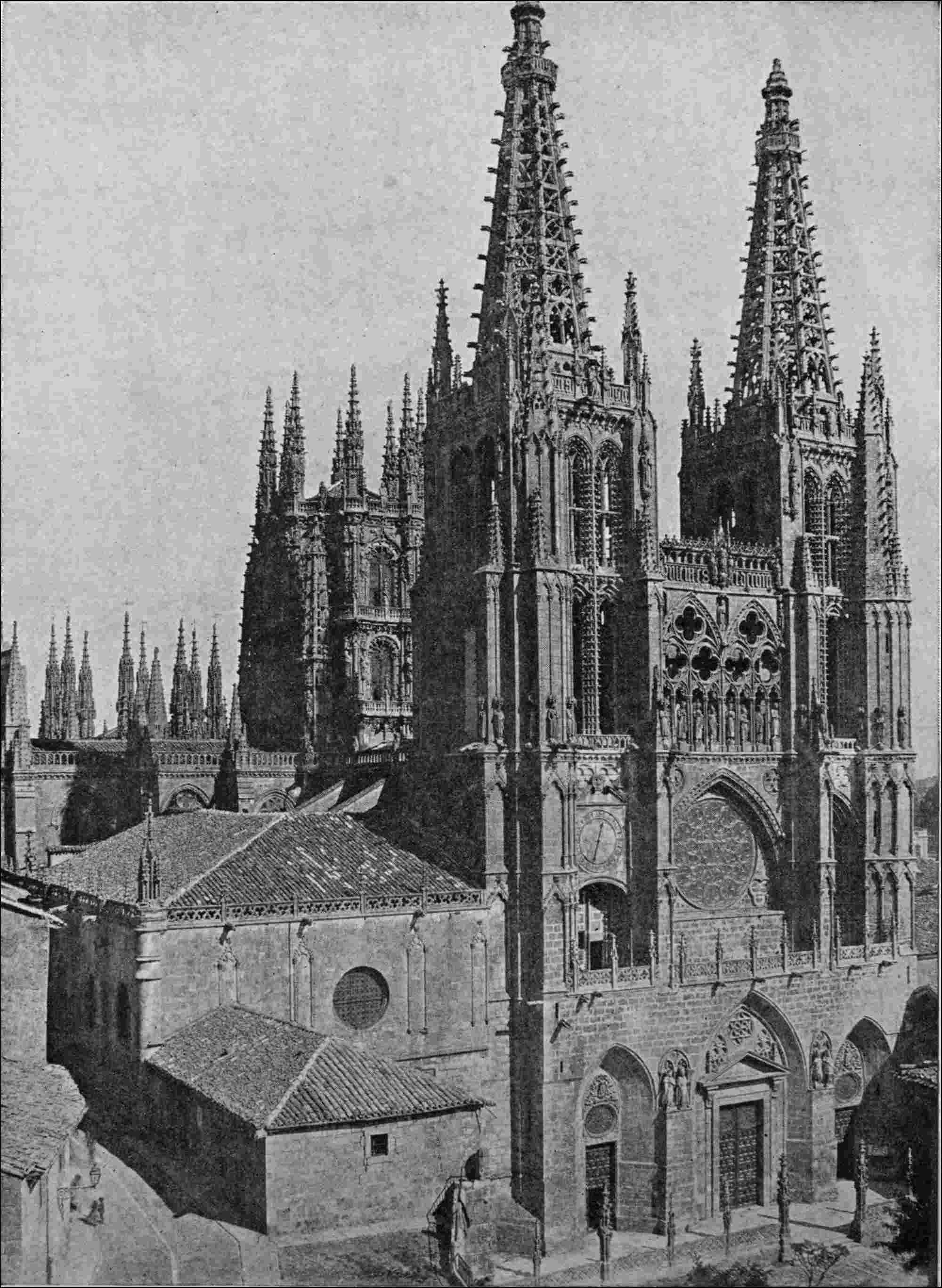 It would be impossible to collect within the small boundaries of a single volume sketches and pictures of all the masterpieces of architecture, and a vast amount of interesting literature has had to be ignored. I have tried, however, to gather choice examples of as many different styles of architecture as possible and to give a description, wherever practicable, of each building’s special object of veneration, such as the Christ of Burgos and the Cid’s coffer in the same Cathedral; the Emerald Buddha at Wat Phra Kao, Bangkok; the statue of Our Lady at Toledo; the shrine of St. Thomas à Becket at Canterbury; etc., as well as the specialvi feature for which any particular building is famous, such as the Court of Lions in the Alhambra; the Chapel of Henry VII. in Westminster Abbey; the Convent of the Escurial; the spiral stairway at Chambord; etc., and also a typical scene, like the dance de los seises in the Cathedral of Seville; and the celebration of Easter at St. Peter’s.