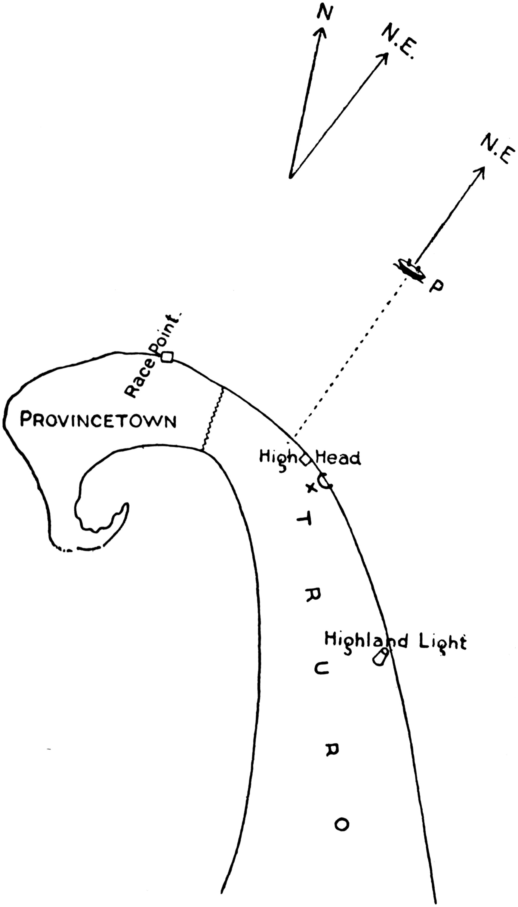 The two masted schooner Clara Bell, Captain Amesbury, with a cargo of coal for Boston, had that morning sailed out of the harbor of Vineyard Haven and passed across the shoals of Vineyard Sound, moved rapidly up the coast, and by ten o’clock that night was nearly opposite Highland Light. The wind, which had been only fairly strong up to this time, rapidly increased in velocity, and snow began falling thick and fast.