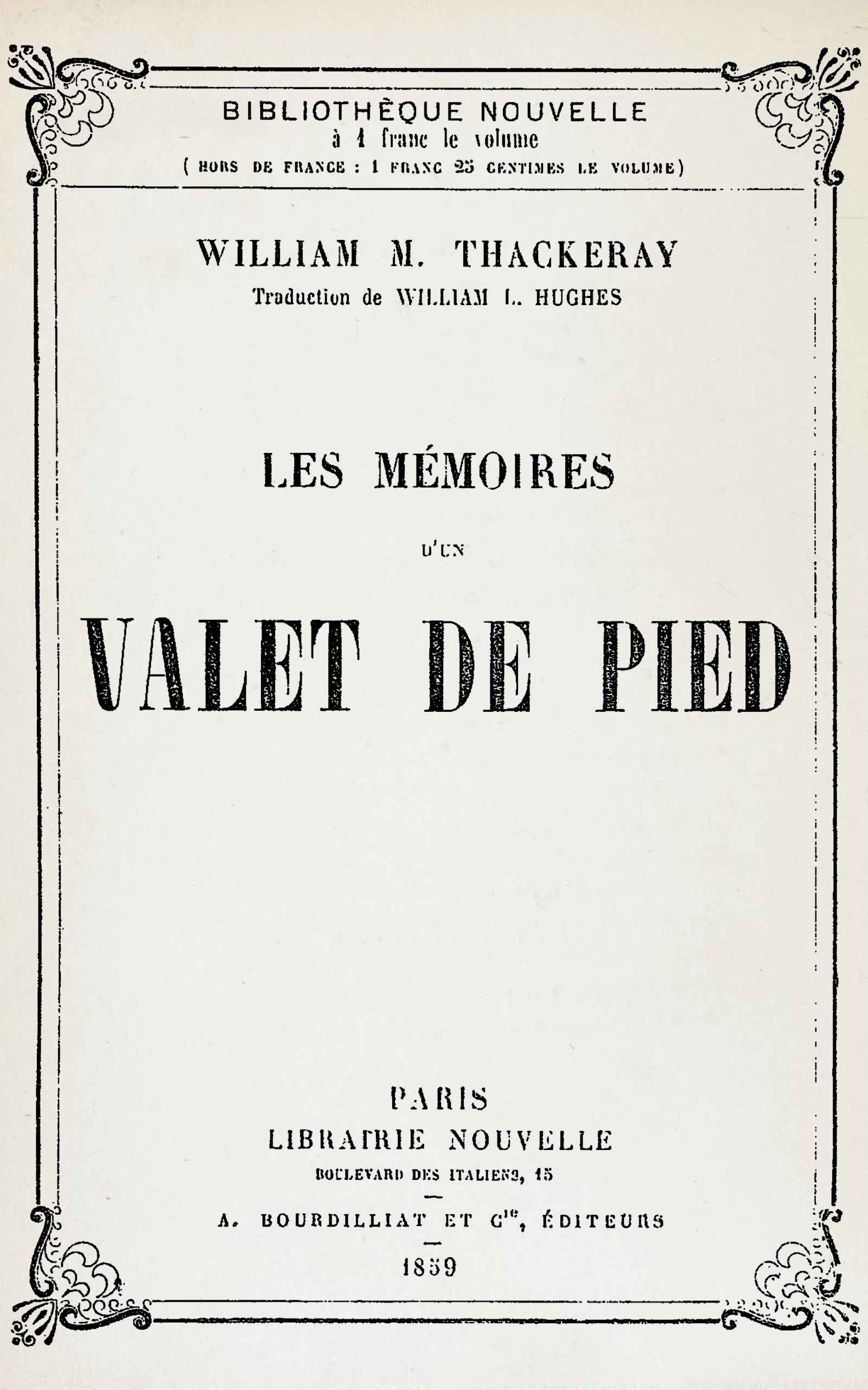 Mais nous ne songions pas le moins du monde, en prenant la plume, à entamer une dissertation sur l’utilité du roman en général ou sur la tendance morale de ceux de M. Thackeray en particulier. Peut-être les Mémoires d’un Valet de pied renfermeront-ils une leçon pour quelques lecteurs ; — mais, à coup sûr, ils n’ennuieront personne… Ils ont même amusé le traducteur durant sa tâche, et nous croyons que c’est là une recommandation assez rare pour mériter d’être signalée.