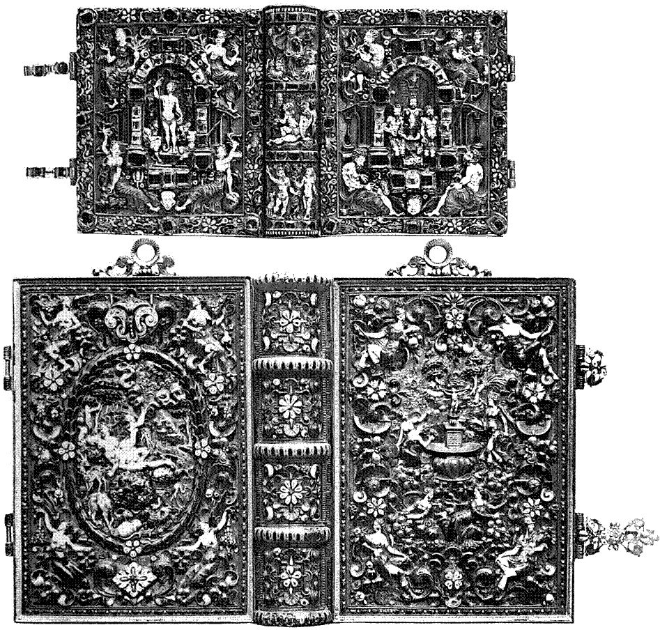 | Bound in cow-hide, pressed, chased, coloured & gilded | £2 2s. to £5 5s. | ||