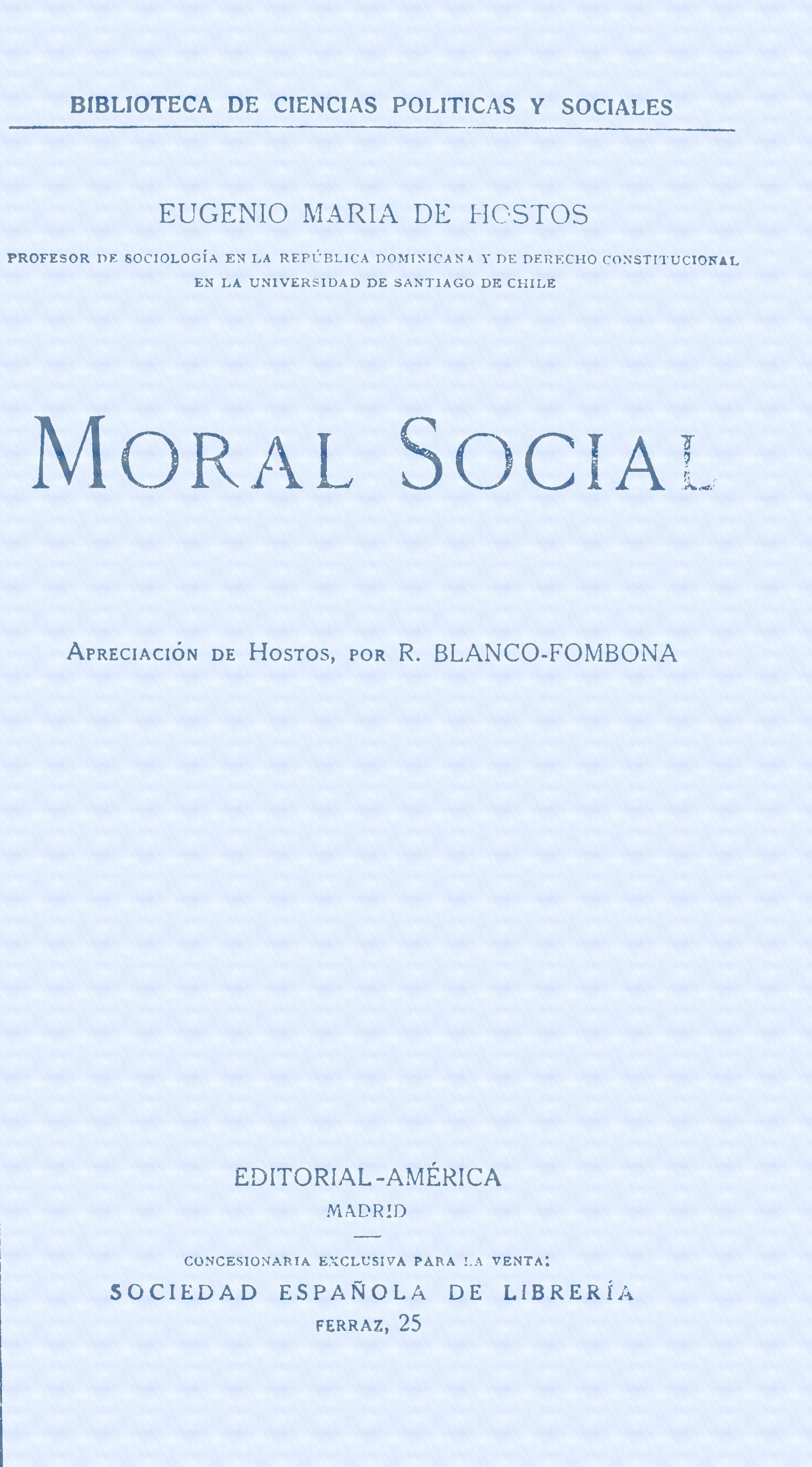 Hostos es pensador original y auténtico. Él conoce los problemas sociales é institucionales de América. En vez de criticarlos grosso modo, los descoyunta y analiza. Y cien veces arroja luces nuevas. Y cien veces presenta un nuevo aspecto de las cosas ó asoma nueva idea. Su acierto y novedad son constantes. En él no existen las intermitencias de Sarmiento. Su claridad es la del sol. Y los eclipses, como se sabe, no son frecuentes. Mientras Sarmiento arriba á la verdad de un modo brusco, por un arranque de clarividencia, por una síntesis brillante é instintiva, Hostos, como Andrés Bello, va paciente, consciente, lógico, por una escala de raciocinios. Su obra es más vasta, más metódica, más sólida, más perdurable, que la del rioplatense.