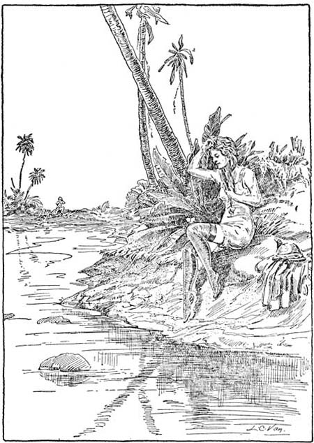 Holding his sweetheart in his arms, Carl saw the dismal jungle brightened with the rays of the setting sun, as Sana recovered consciousness and with a cry of joy embraced him, realizing that she was safe at last.