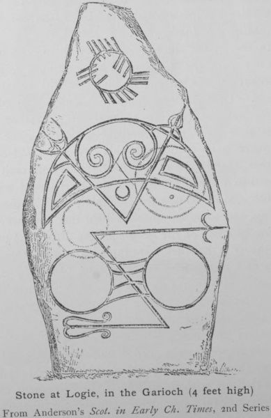 =Strichen= (1094) was formerly called Mormond, from the hill at the base of which the village stands. This hill owing to the comparatively level character of the surrounding country is a conspicuous feature in the landscape for miles. On the south-western side, the figure of a horse is cut out in the turf, the space being filled up with white stones. This “White Horse” occupies half an acre of ground and is visible at a great distance. On the south side of the hill an antlered stag on a larger scale is figured in the same manner. This was done so late as 1870. (pp. 11, 16, 38, 91, 158.)