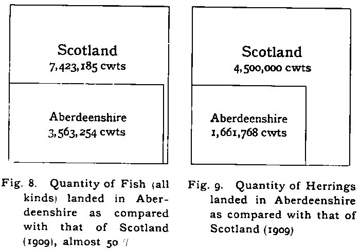 Fig. 8. Quantity of Fish (all kinds) landed in Aberdeenshire as compared with that of Scotland (1909), almost 50%