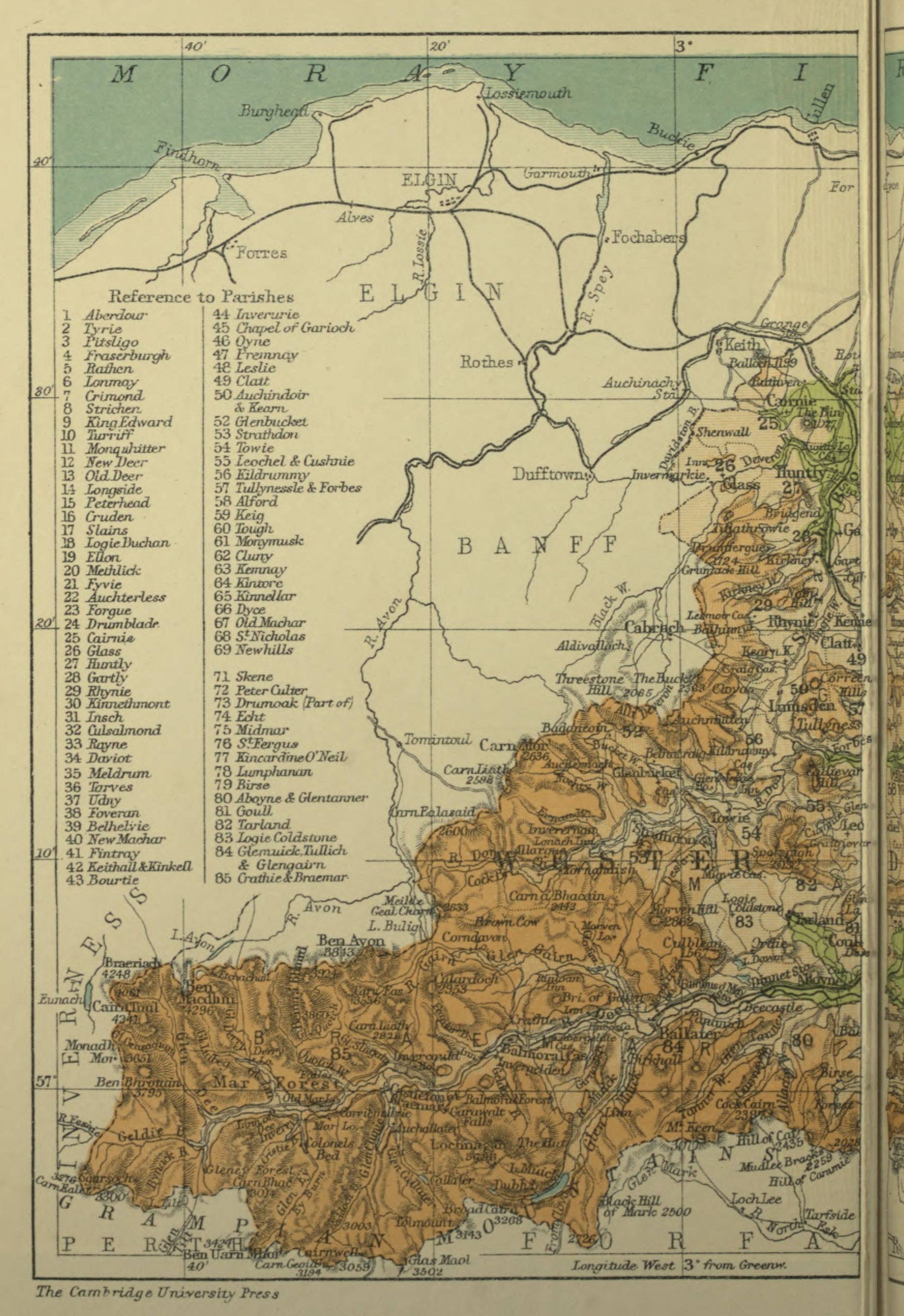 =Turriff= (2346) is situated on a table-land on the north of the burn of Turriff near its junction with the Deveron. Turriff is midway between Aberdeen and Elgin; hence the couplet—
