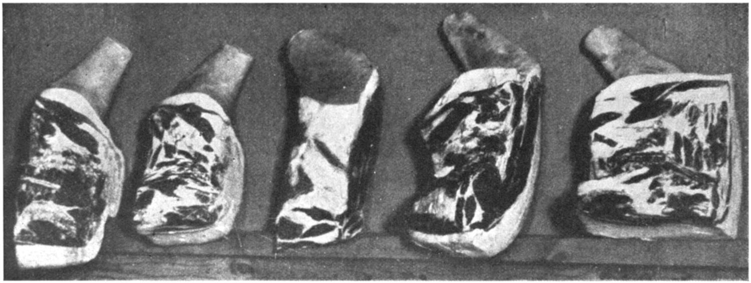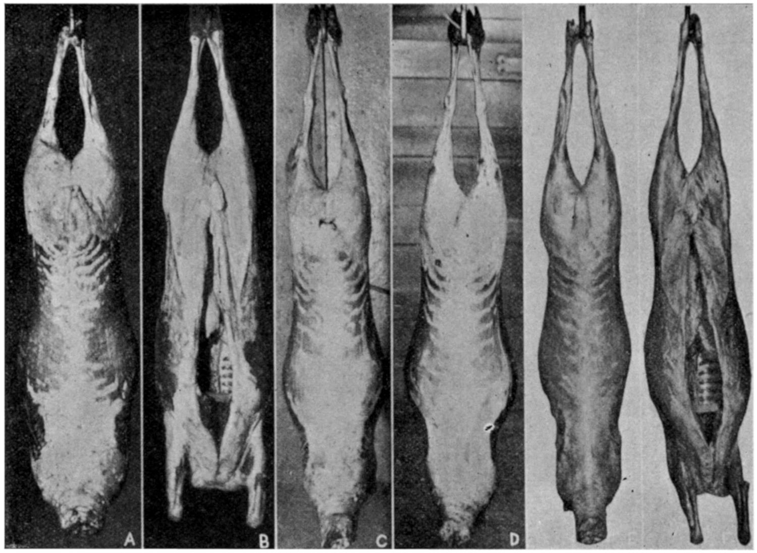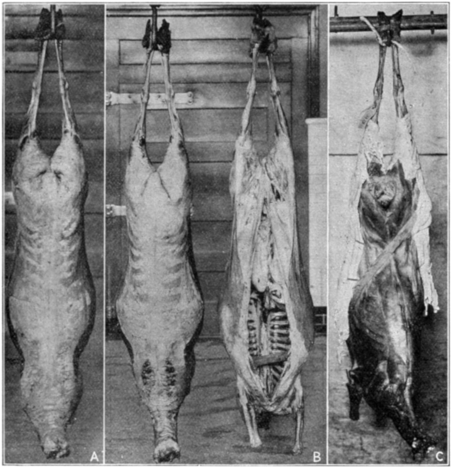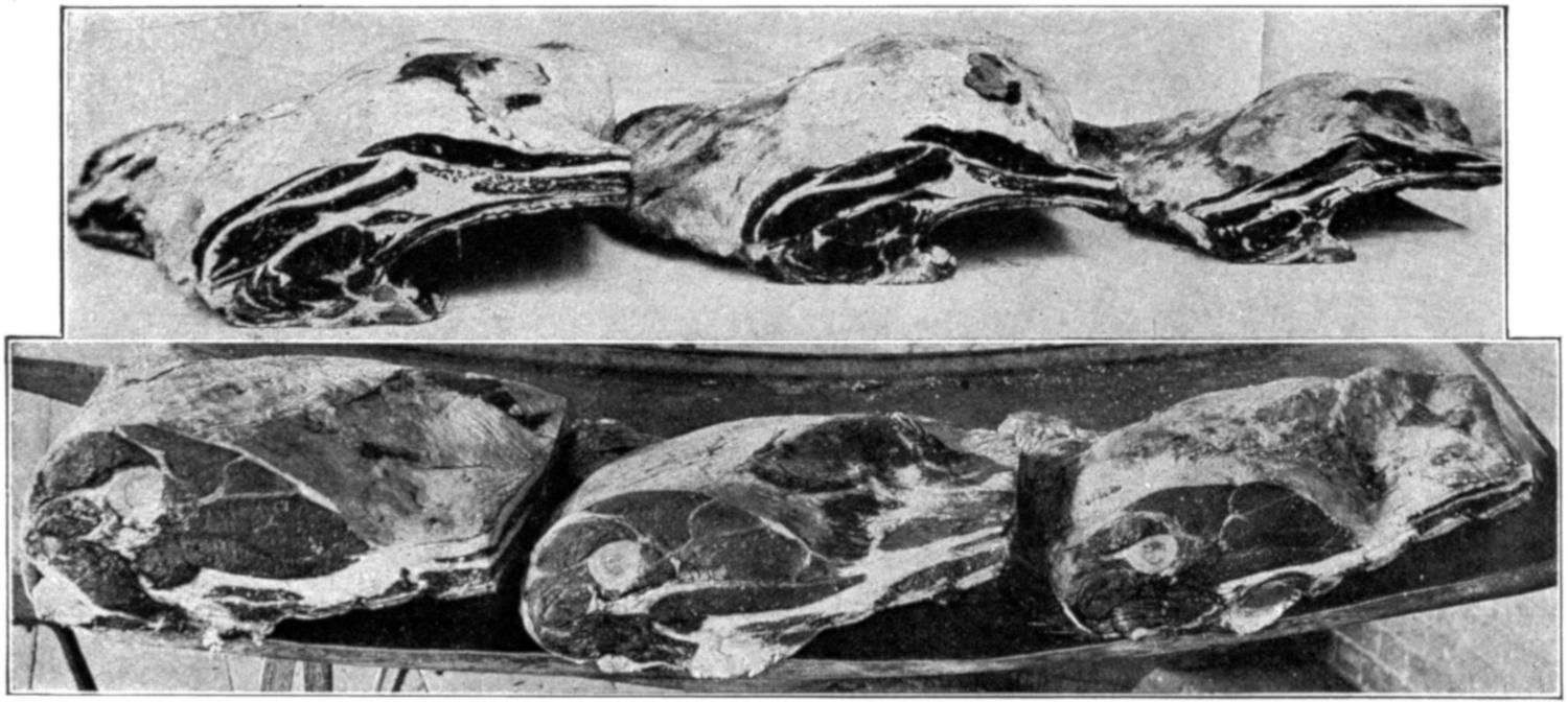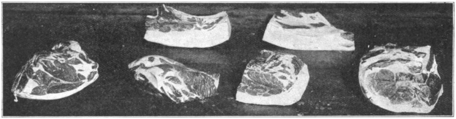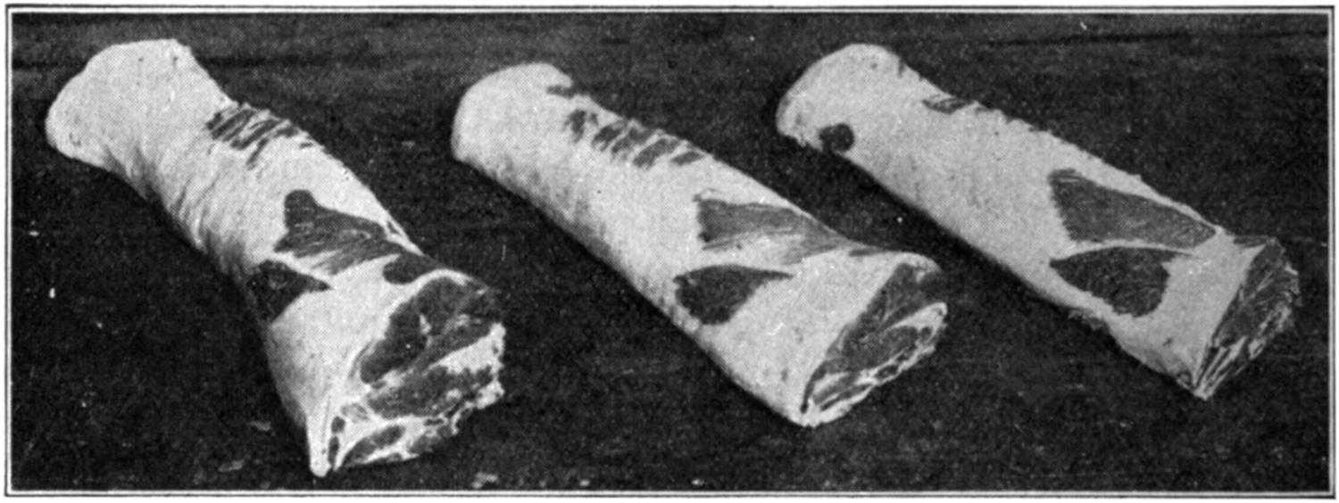 | Yields of Cattle — Yield from Twenty-two Native Cattle — Yield from Fifty-nine Texas Cattle — Yield from Twenty Heavy Cattle — Yield from Thirty-four Cattle — Percentage of Various Cuts — Beef Cuts — Diagram of Cutting — Grading — Loins — Ribs — Rounds — Chucks — Plates, Shanks and Flanks — Barreled Beef. | |