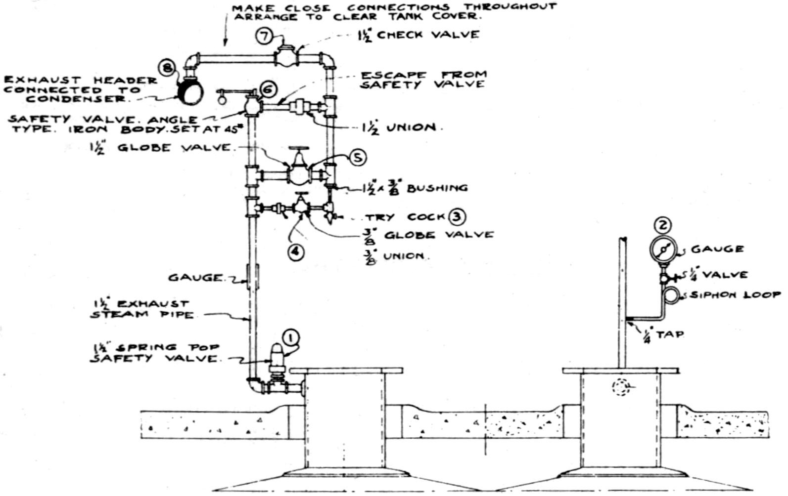 (28) Steam Expense.—The total labor, cost for taking coal from quantity store alongside boiler room, to and firing boilers and disposal of ash. Includes all boiler cleaning, conveyor attention and labor connected with pumps on water connected[460] with the making of steam. Expense of transportation from ship not included. Expense per ton fuel burned.