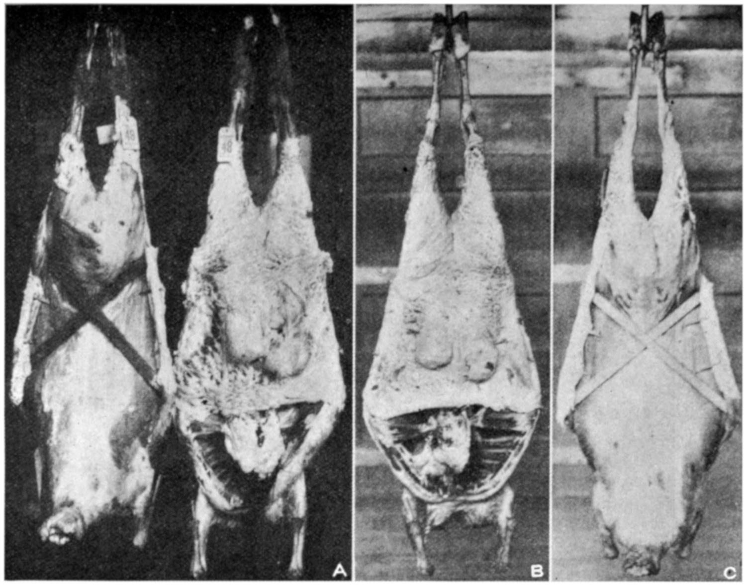 (20) Sheep Killing.—To be the complete expense for dressing sheep from their receipt in the pens to delivery to chill[459] rooms; including all occupations, necessary thereto except the disposal of sheep offal and sheep by meats.