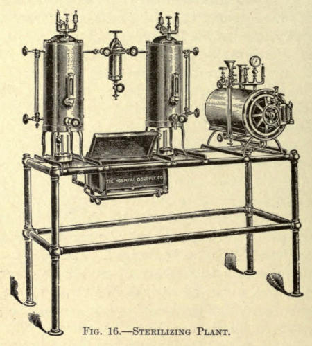 | Sponges and sponging—Sterilization of dressings: Wallace sterilizer; Sprague sterilizer; Sterilizing plant; Dressing cases; Waste cans—Sutures and sterilization: Silkworm gut and silk; Catgut | 22 |