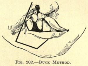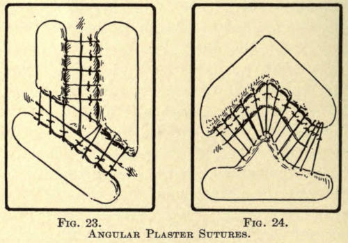 The author uses Unna’s zinc oxide plaster mull for this purpose, as it is backed with gutta-percha, which readily adapts itself to the curvatures of contour.
