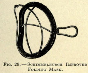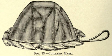 When the surface thus treated has become dry, adhesive plaster, cut in half-inch strips of desirable length, are put on the face, one above the other, slightly overlapping, until the whole treated surface is well covered, mask-like.