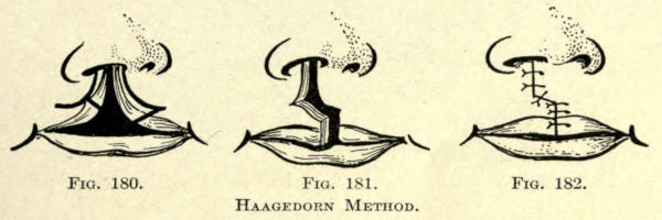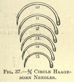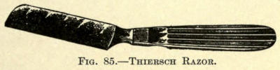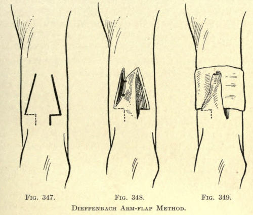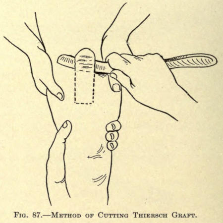 | Incisions—Sutures—Needles—Needle holders—Methods in plastic operations: Stretching method; Sliding method; Twisting method; Implantation of pedunculated flaps by bridging; Transplantation of nonpedunculated flaps or skin-grafting; Autodermic skin-grafting; Heterodermic skin-grafting; Zoödermic skin-grafting—Mucous-membrane-grafting—Bone-grafting—Hair-transplantation | 76 |