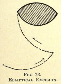 Electrolytic needling may be tried and is quite successful when the marks are very small, but, as with gun-powder stains, they are best removed by punching, or cutting out, a little cone of skin containing the pigment. The secondary wounds thus made leave only very small punctate scars that are hardly noticeable. Of course a number of such removals would not be advisable.