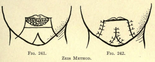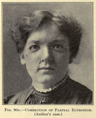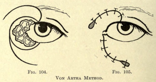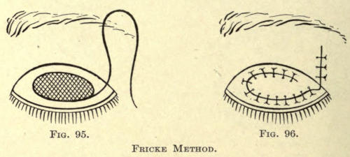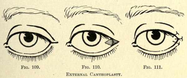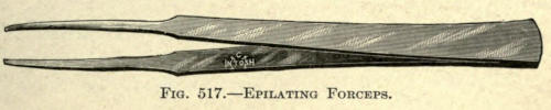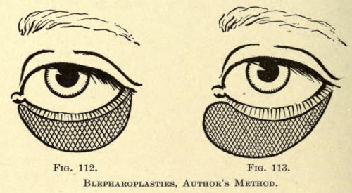 It is hardly necessary to say that the application used should not get into the eyes. The upper eyelids should not be treated, since no benefit arises from it. If there is a redundancy of tissue, it should be removed surgically, as heretofore described.