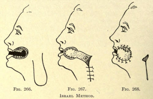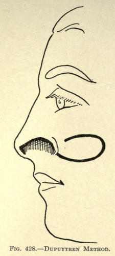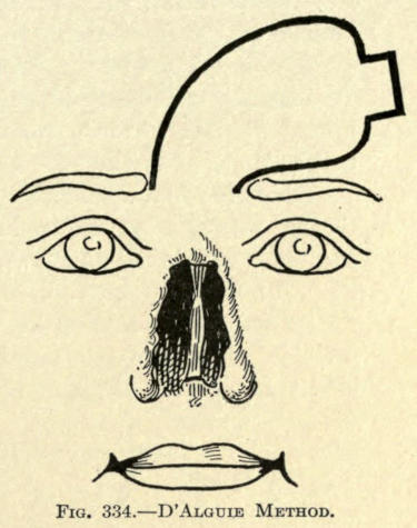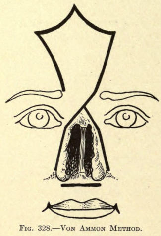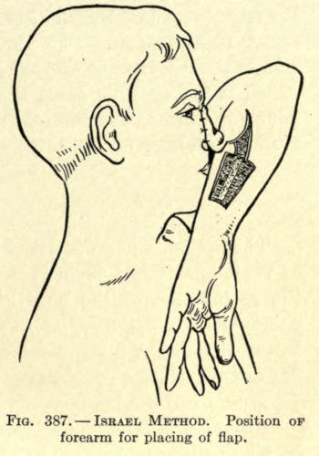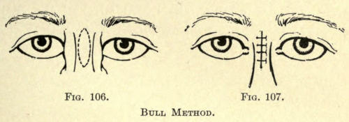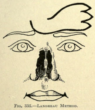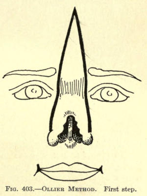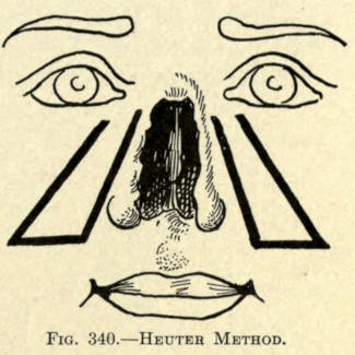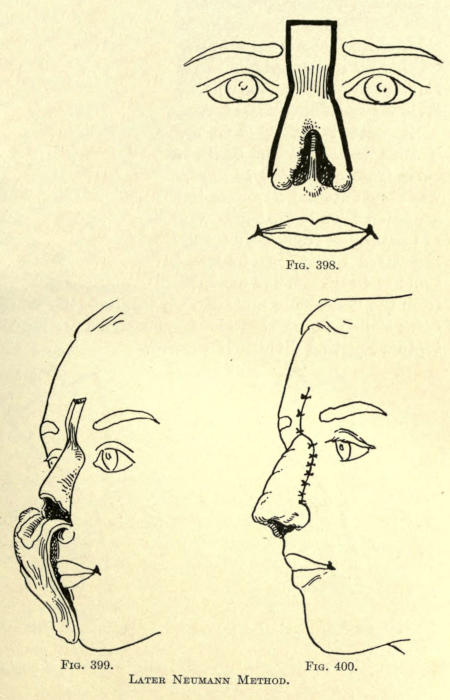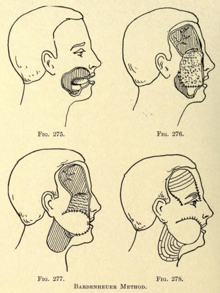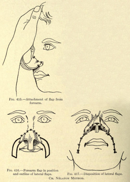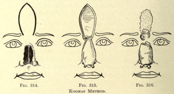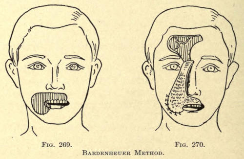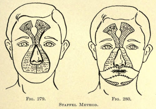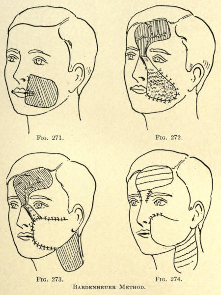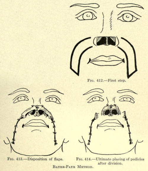 The same method may be followed post-operatio. This method can be employed for the other parts of the face as well, as, for instance, the mouth, ears, base of nose, etc.
