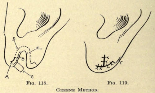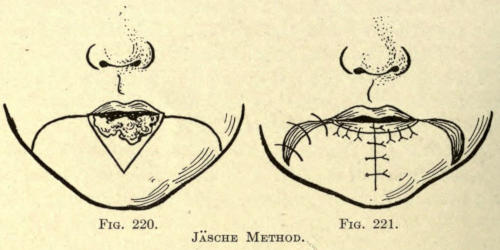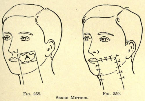 If, after the parts are healed, the color is too light, the scar may again be gone over until the tint matches somewhat the tint of the skin. Other pigments may be used, according to the complexion of the patient.