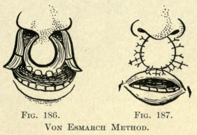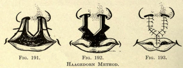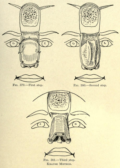 | Harelip: Classification of harelip deformities; The operative correction of harelip; Of unilateral labial cleft; Of congenital bilateral labial cleft; Post-operative treatment of harelip—Superior cheiloplasty: Classification of deformities of the upper lip; Operative correction of deformities of the upper lip—Inferior cheiloplasty—Labial deficiency—Labial ectropion—Labial entropion—Vermilion deficiency | 145 |