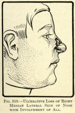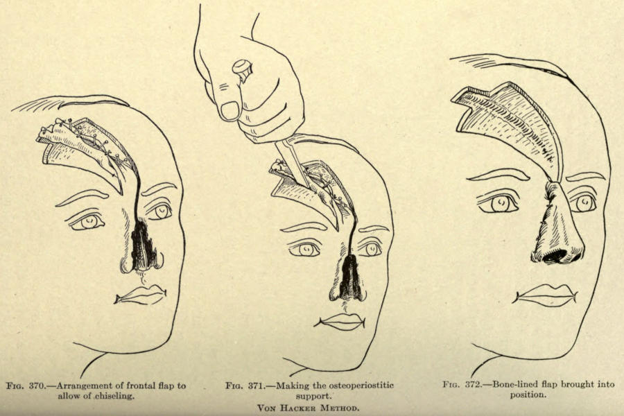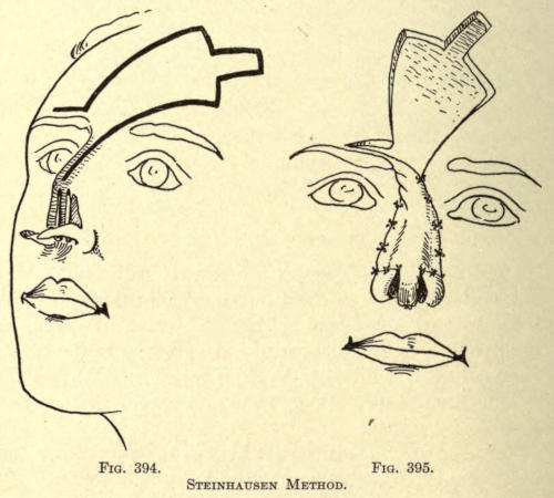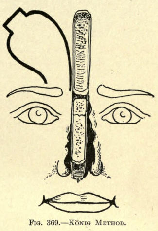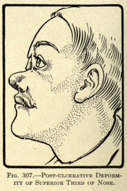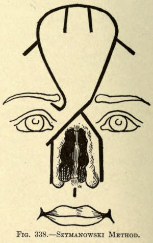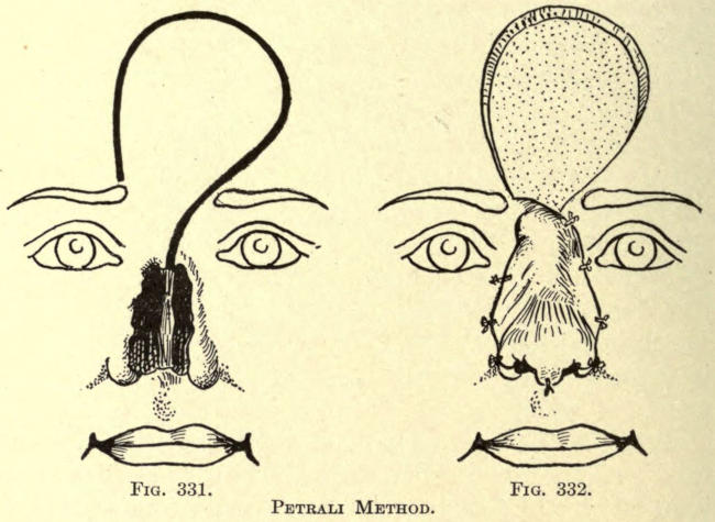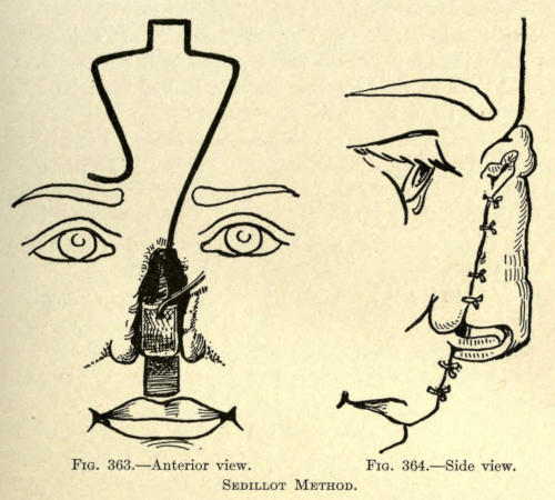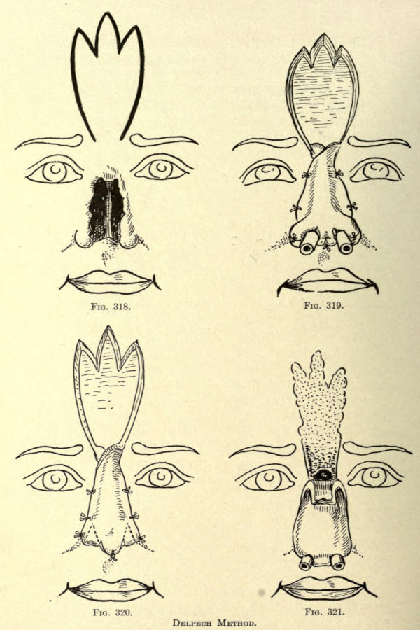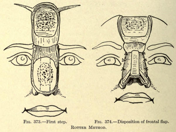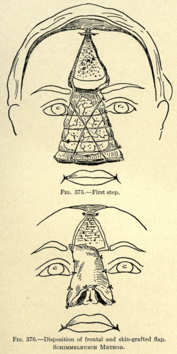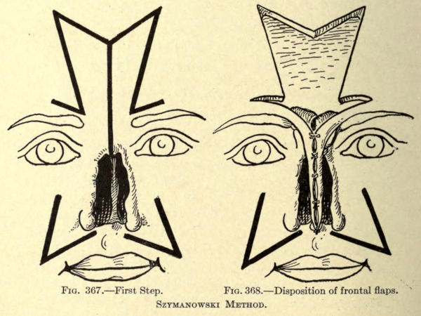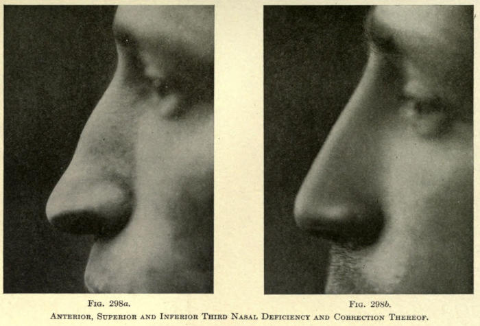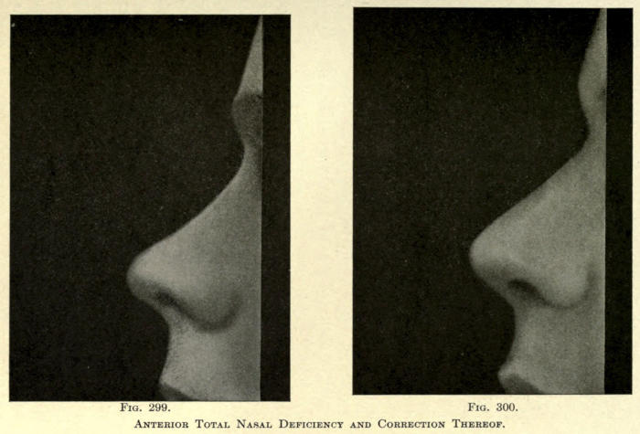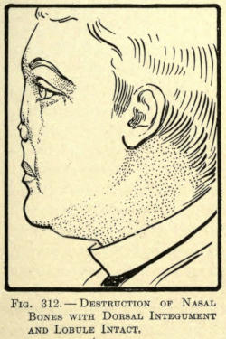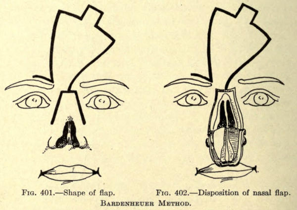 | The causes of nasal destruction—Classification of deformities—Surgical technique—Protheses—Nasal replanting—Nasal transplanting—Total rhinoplasty: Pedunculated flap method; The Indian or Hindu method; The French method; The Italian method; The combined flap method; Organic support of nasal flaps; Periostitic supports; Osteoperiostitic supports; Cartilaginous support of flap—Partial rhinoplasty; Restoration of base of nose; Restoration of lobule and alæ; Restoration of the alæ; Restoration of nasal lobule; Restoration of subseptum | 339[xii] |