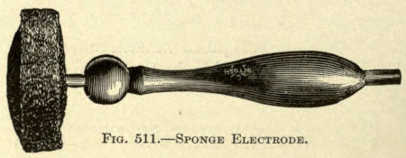 Birthmarks, port-wine marks, and other pigmentary conditions may be entirely or partly removed from the skin of the face, according to the size of the area treated and the nature of the case. For this purpose the single needle attached to the negative pole is hardly sufficient, unless the spot is exceedingly small, therefore a bunch needle electrode is used. This electrode has a number of fine steel needles set into it, as shown in Fig. 519.