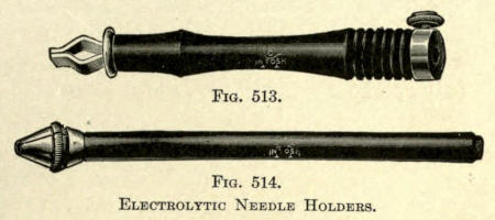 These instruments are electro-magnetic devices made[487] to accommodate single or multiple needle points and can be obtained from instrument makers.