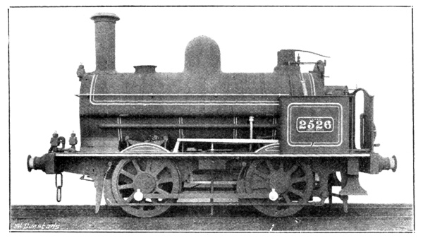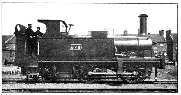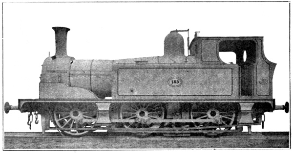 Our last illustration (Fig. 146) is produced from a photograph of “Peake,” one of the “light” engines of the Cork and Muskerry Light Railway. Engines of this type are specially designed for working on “light” railways.