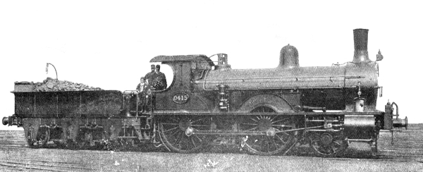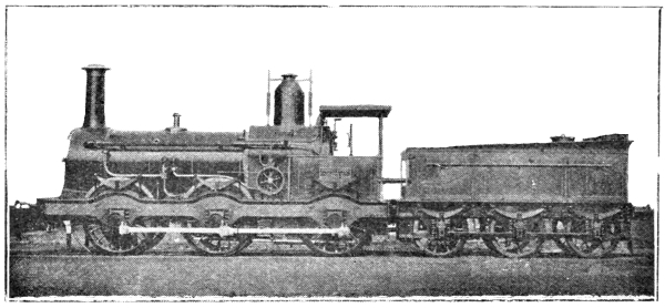 Fig. 145 is from a photograph of one of the standard passenger engines of the Great Southern and Western Railway. This engine was designed by Mr. R. Coey, the Company’s locomotive superintendent. The coupled wheels are 6ft. 6in. diameter, the cylinders being 18in. diameter, with a stroke of 24in.