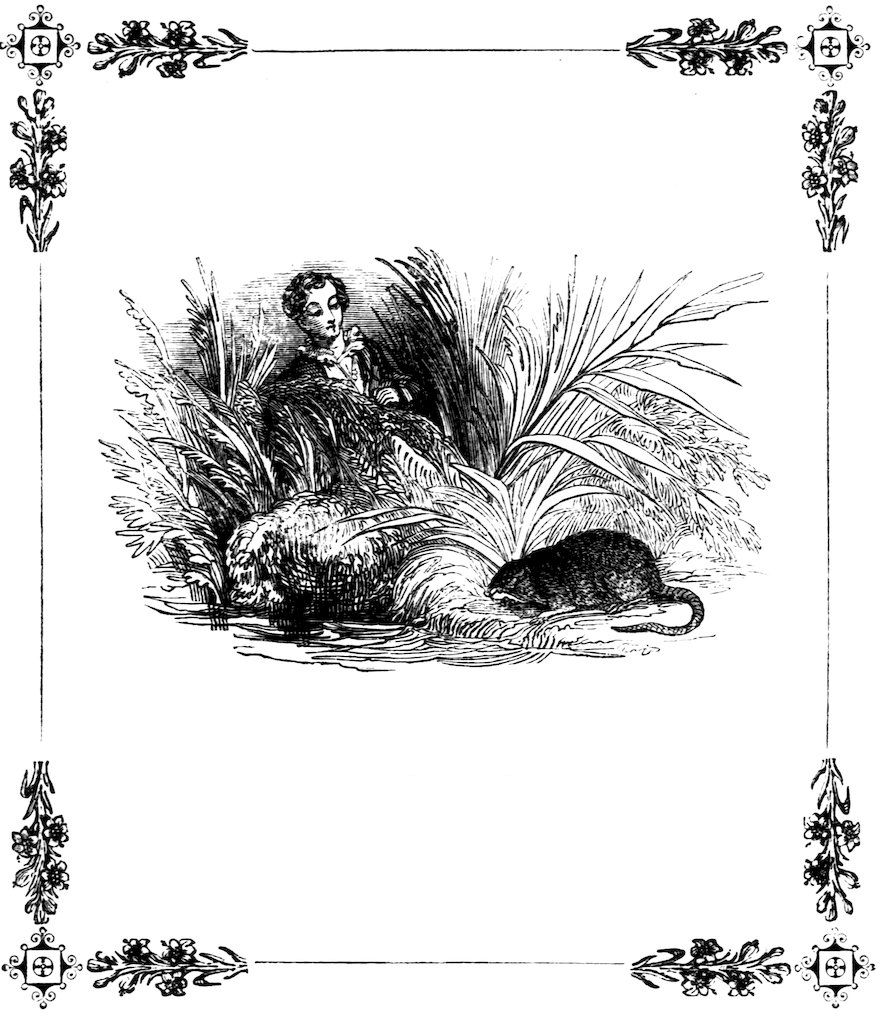 “Oh, mamma,” said Frank, “do come and see this droll sight! Look on the other side; just by that old stump of a tree is a large water-rat. I have seen him a long time, and I think he wants to dig a hole in the bank: if I go near to look at him, he jumps into the pond. Is he going to make a place to live in?”