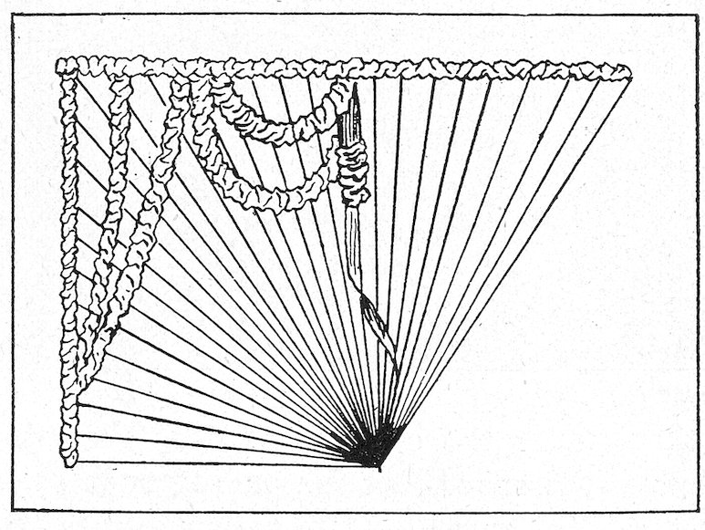 DISPLAY OF SEWING SILKS STRUNG ON CORDS AND ATTACHED TO FRAMEWORK.—Ross.
