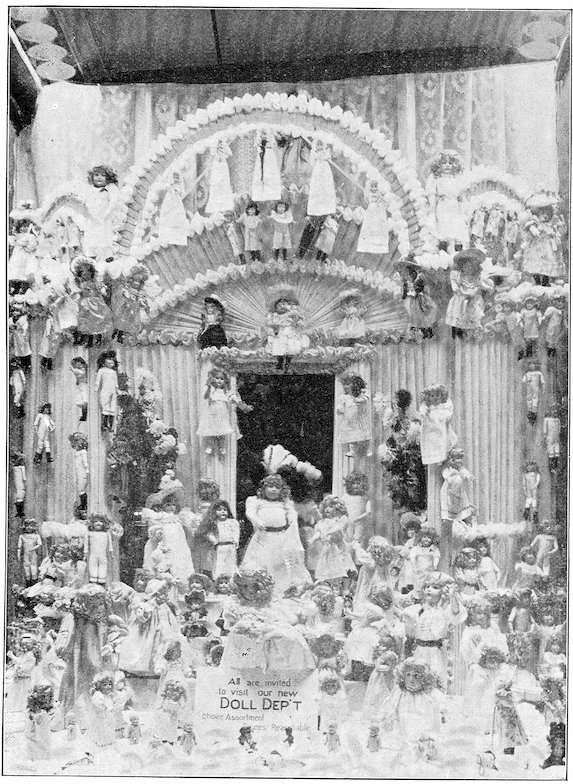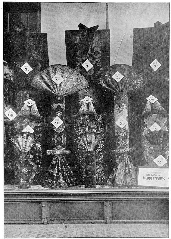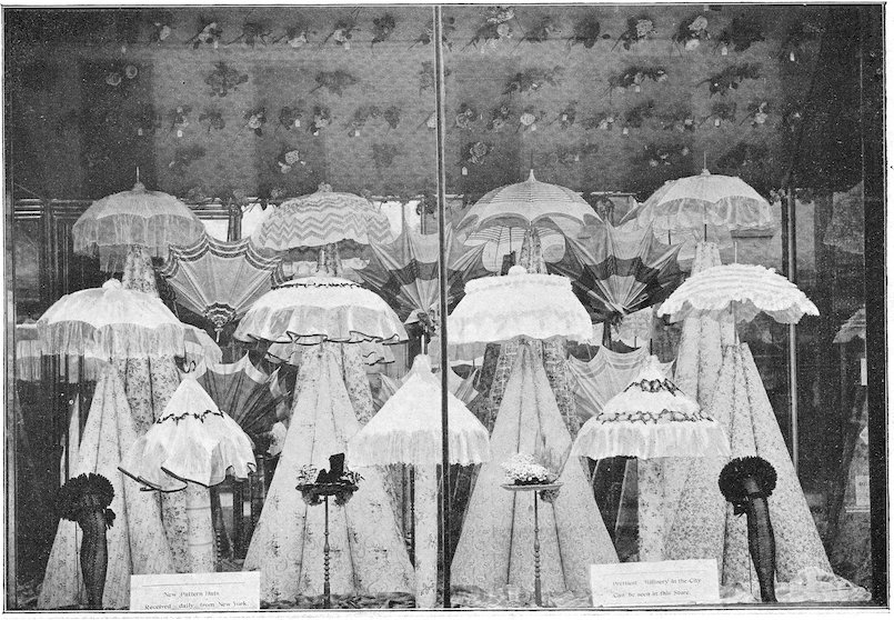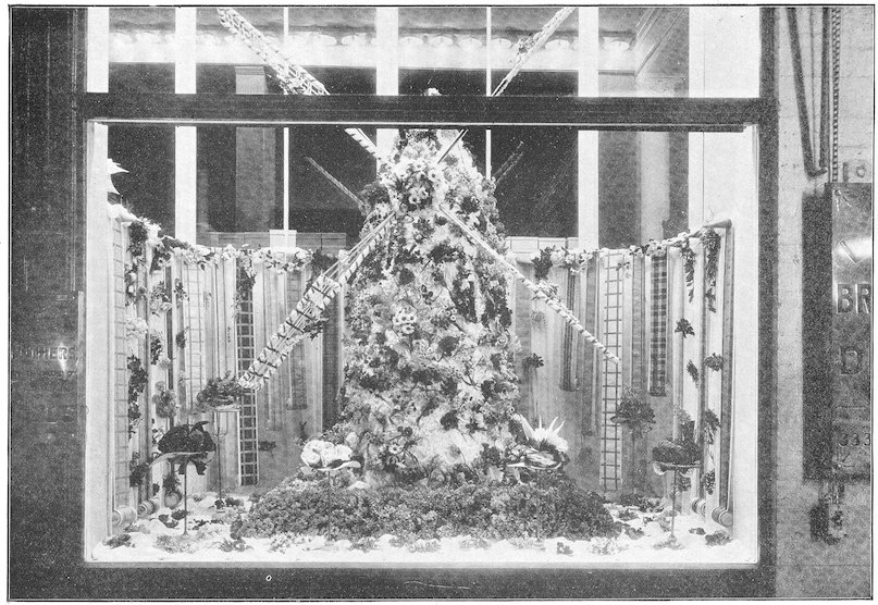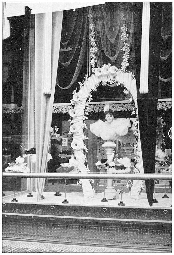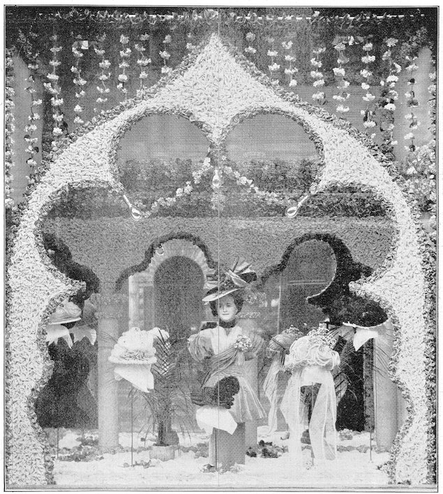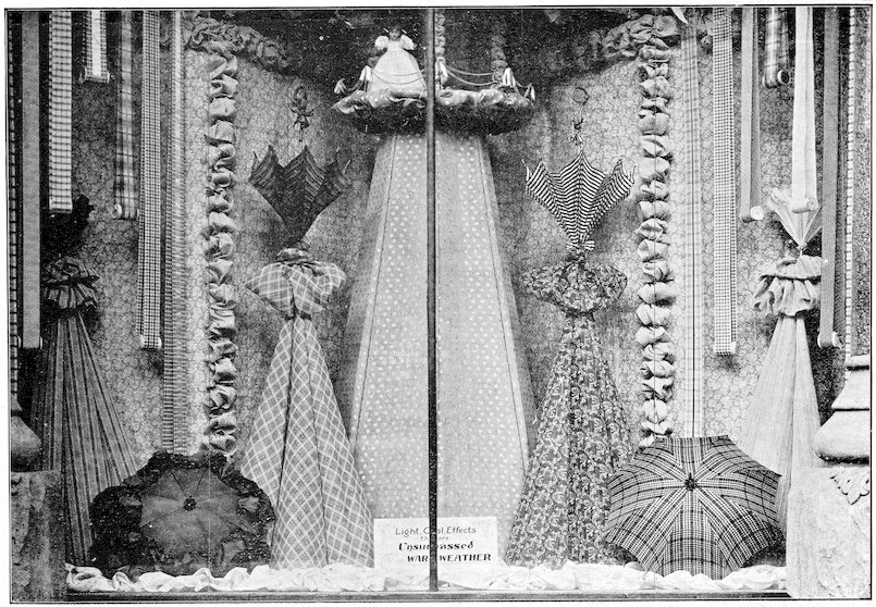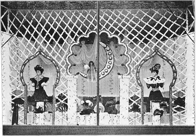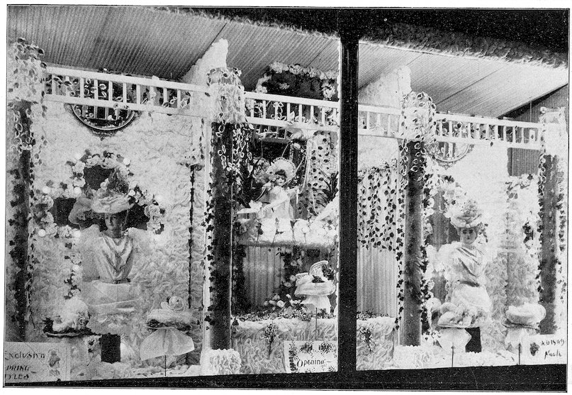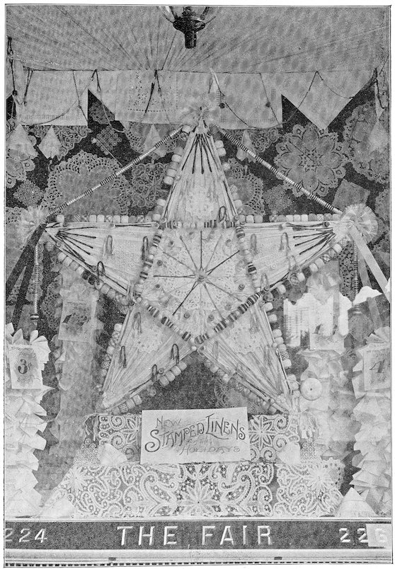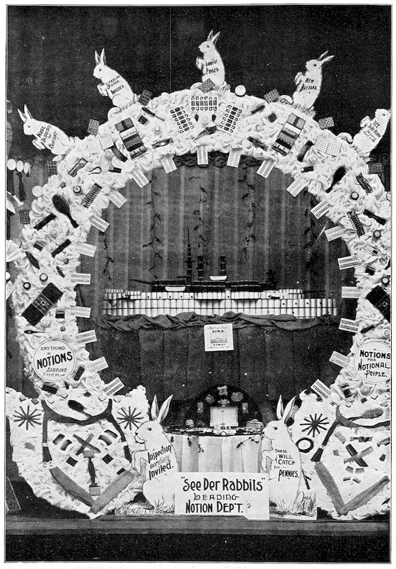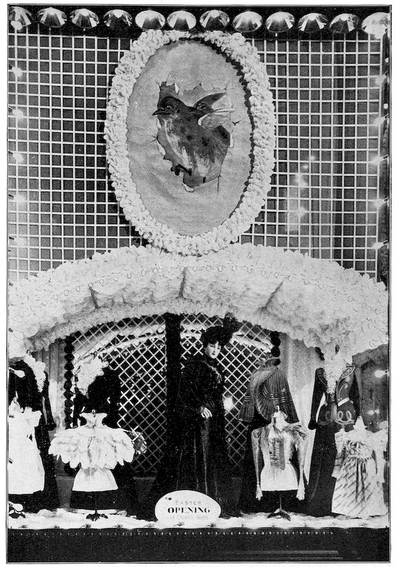 I have selected as examples of good trims in every line of dry goods some of the best designs that have appeared during the past three years in the popular window-trimming journal, The Show Window. In no other place could I hope to find such representative work of the best decorators in America, and as my selection has been made with great care, I feel it is a panorama of 241the most artistic and practical window displays ever yet congregated for the study and consideration of the thoughtful decorator. The Show Window is published under the auspices of The National Association of Window Trimmers of America, an organization that includes the most famous window trimmers in the United States and Canada and has done more to advance decorative art in America than any other institution.