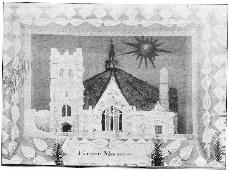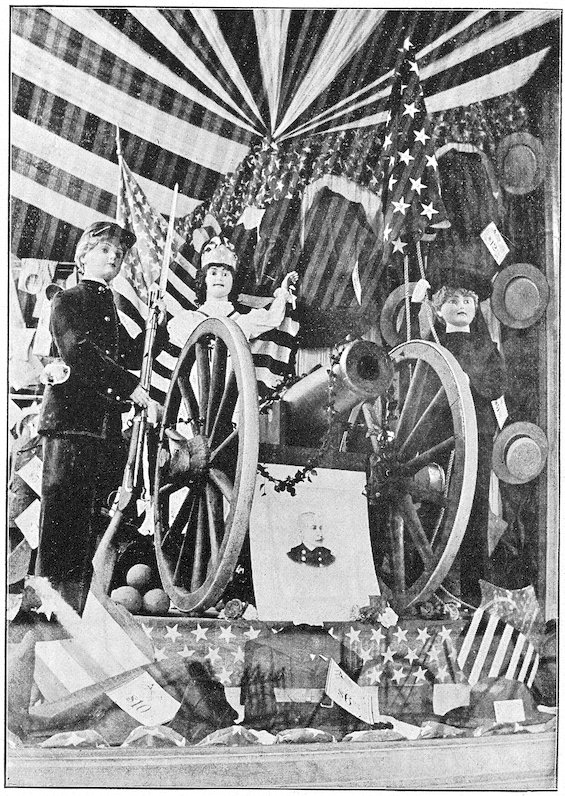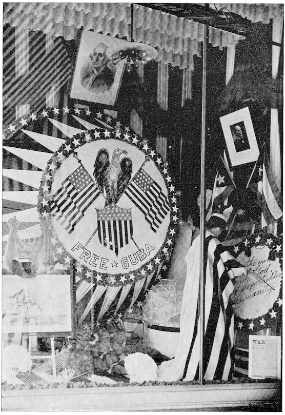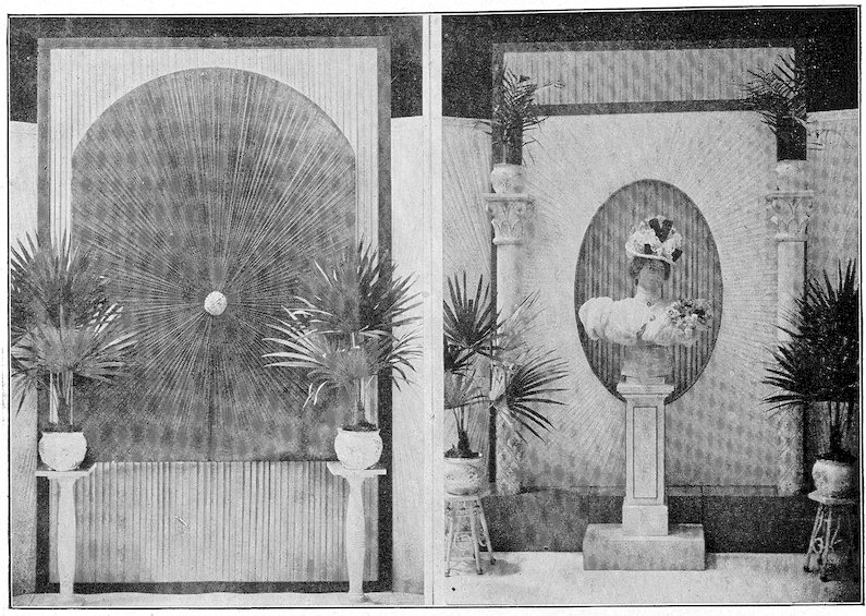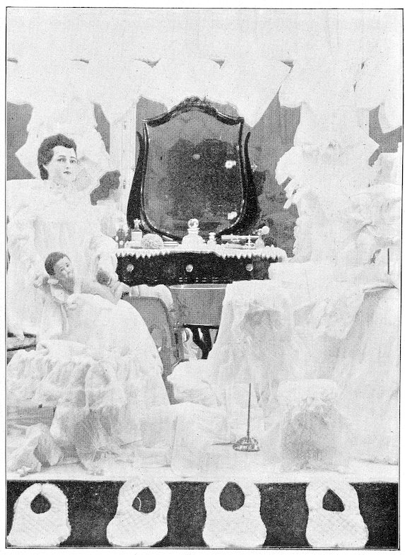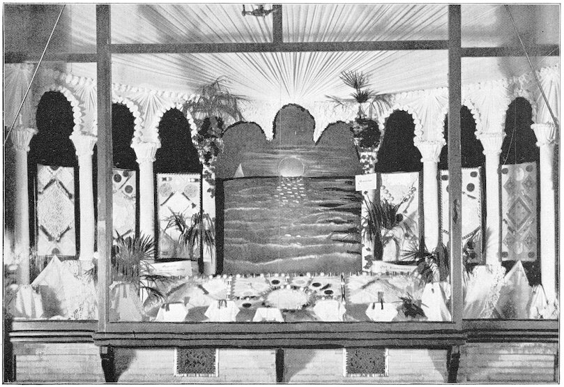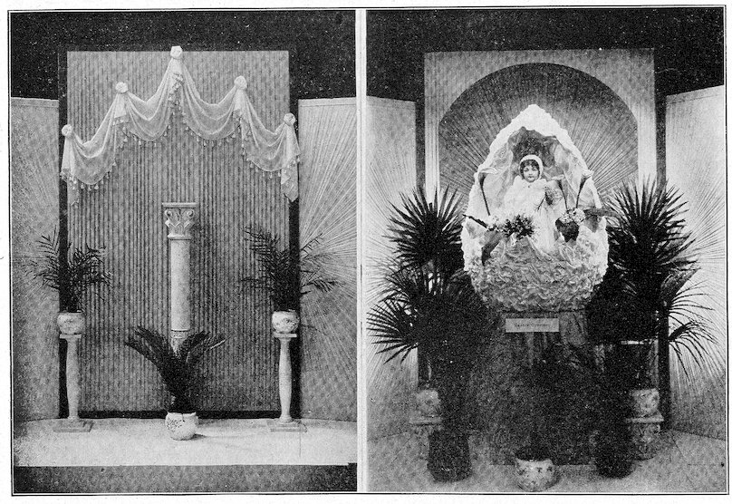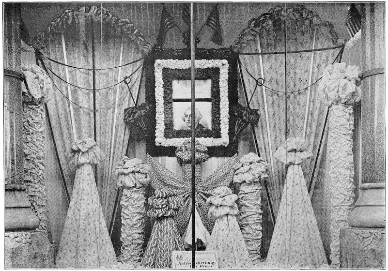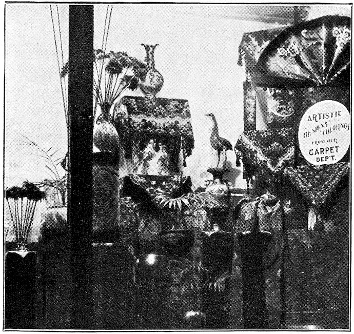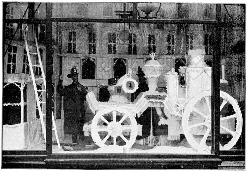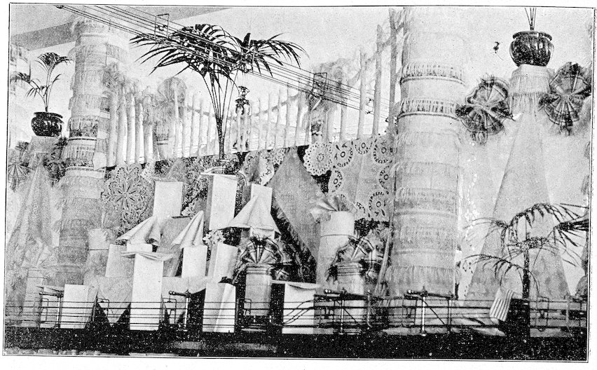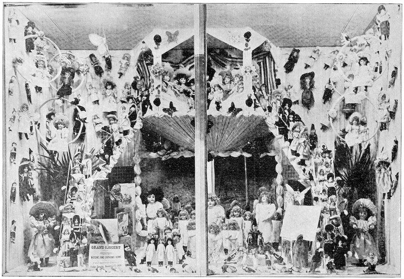 I have selected as examples of good trims in every line of dry goods some of the best designs that have appeared during the past three years in the popular window-trimming journal, The Show Window. In no other place could I hope to find such representative work of the best decorators in America, and as my selection has been made with great care, I feel it is a panorama of 241the most artistic and practical window displays ever yet congregated for the study and consideration of the thoughtful decorator. The Show Window is published under the auspices of The National Association of Window Trimmers of America, an organization that includes the most famous window trimmers in the United States and Canada and has done more to advance decorative art in America than any other institution.