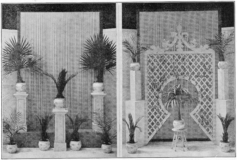 11All windows should have a substantial board backing and sides extending about one-half the height of the window itself. A door should be made in this at one side, to permit the trimmer easy entrance and enable you to reach any goods you may wish to withdraw from the window. Above this backing it is desirable to have a sash reaching to the ceiling, which will serve to admit light and prevent dust reaching the trim.